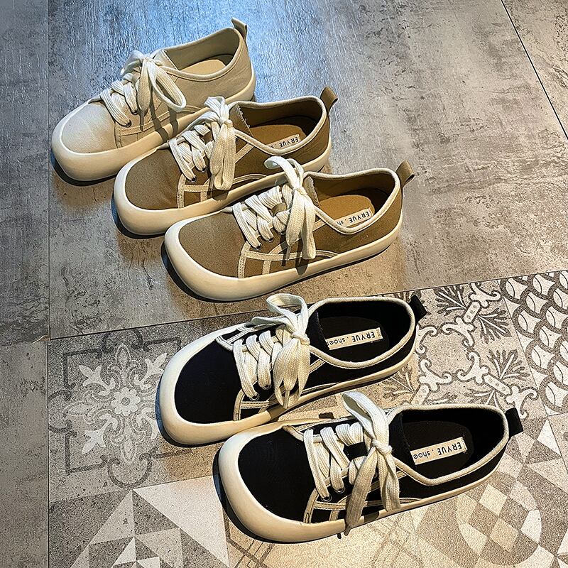 靴女性の2022年春新しい通気性のあるスクエアトゥフラット滑り止めファッションオールマッチストリートトレンドキャンバスシューズ スプリング 春物 スクウェア jxjxf83596984124