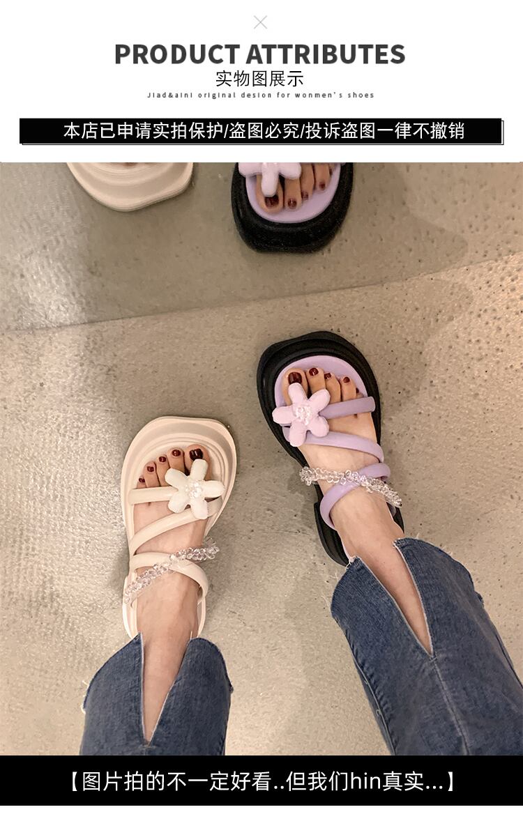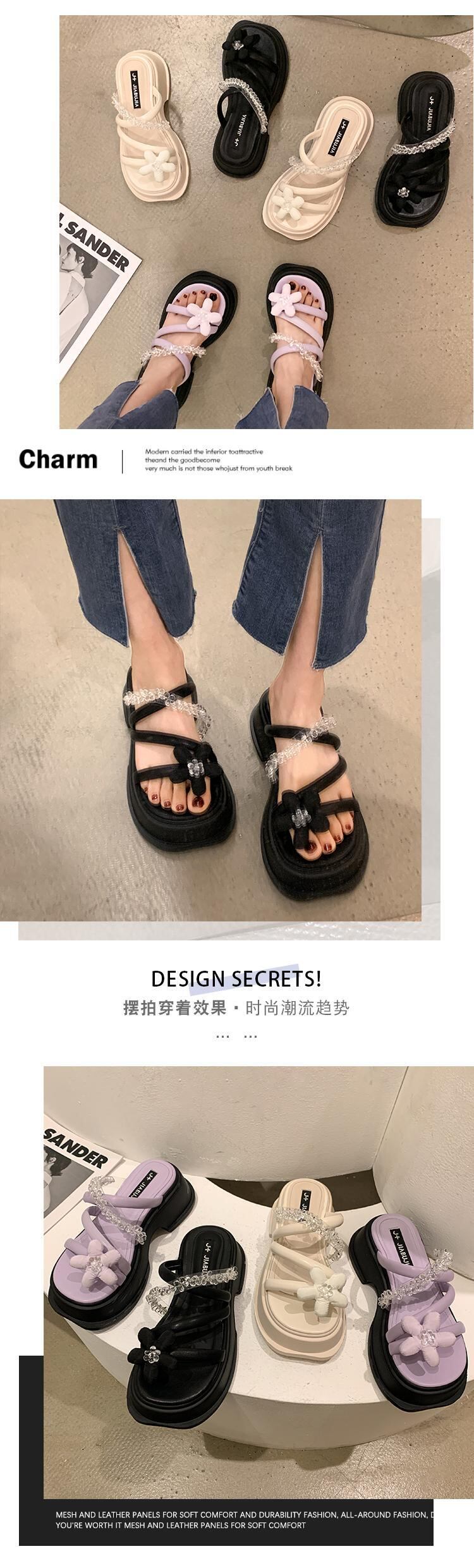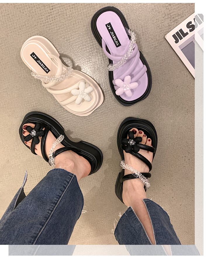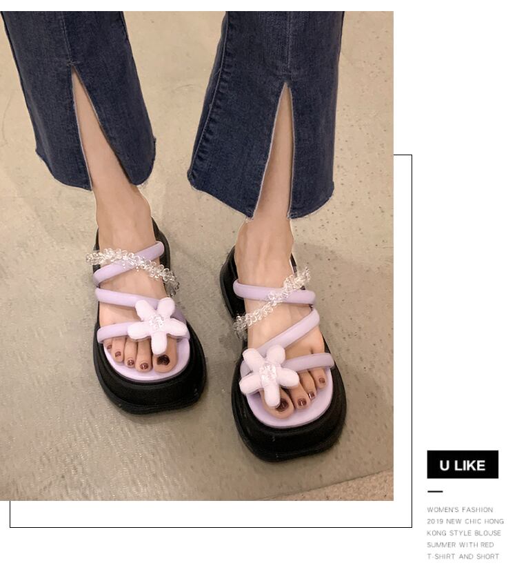 スリッパ女性の潮汐2022年夏の新しいアウターウェアファッションクリスタルフラワー厚いヒール滑り止めの妖精風スリッパ 靴 シューズ ミュール サマー 夏物 フラワーデザイン jxjxf76663769519