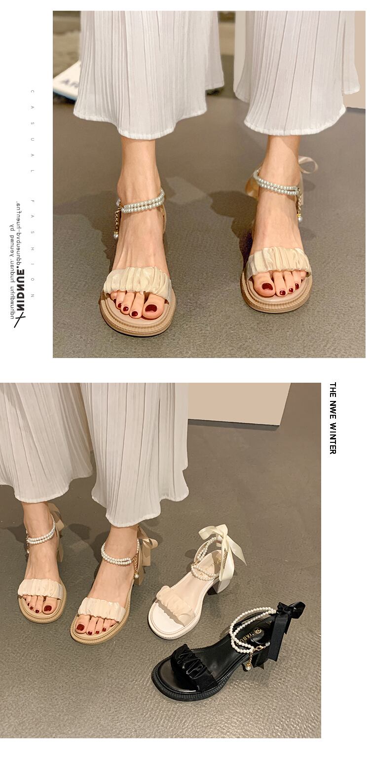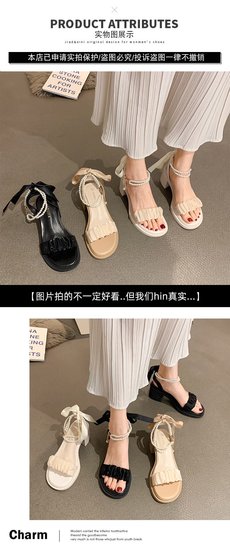 フェアリースタイルサンダルレディース2022夏ニューネットレッドスーパーオールマッチパールシックヒール滑り止め一言ハイヒール 靴 シューズ サマー 夏物 スリッポン 真珠 jxjxf85847245301