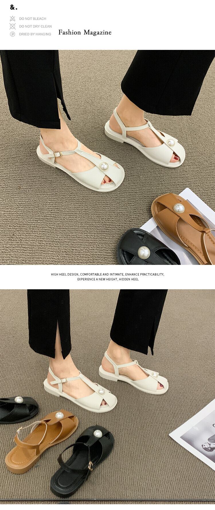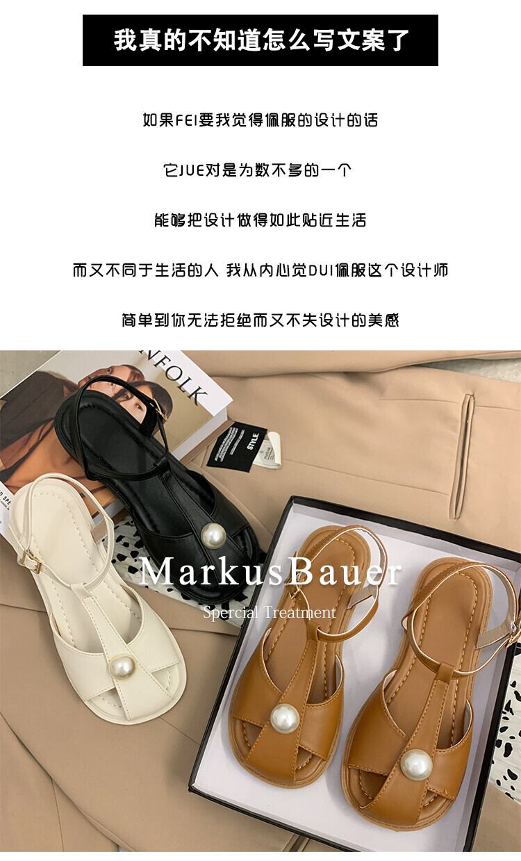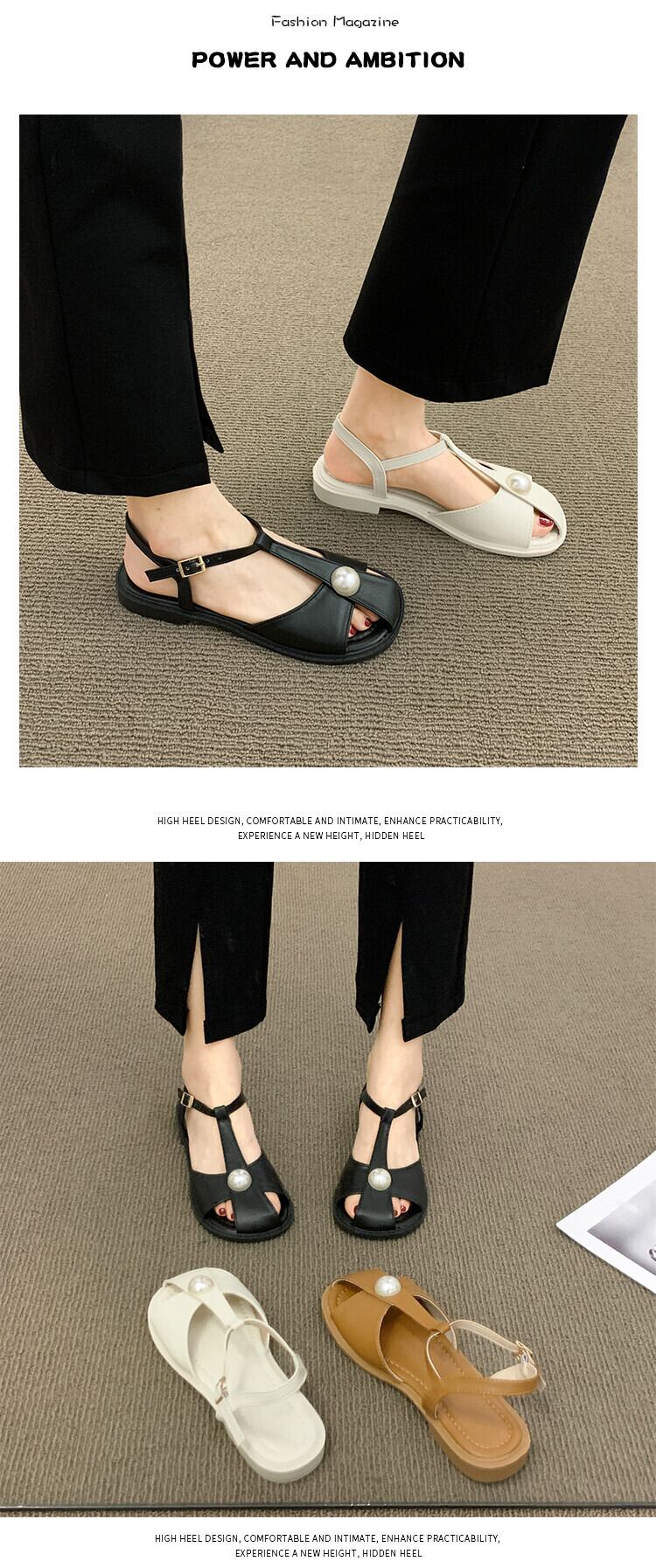 包頭サンダルレディース2022夏新作ファッションオールマッチレトロパールバックル平底滑り止めローマ靴潮 シューズ サマー 夏物 真珠 jxjxf2383313646
