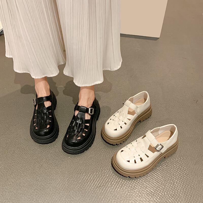 小さな革の靴の女性の2022年春の新しい織りの厚いヒール滑り止めのファッションオールマッチ小さなeseレトロなシングルシューズ スプリング 春物 レザー jxjxf61654754750