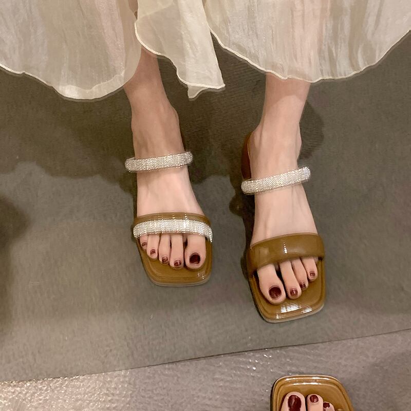 ネット赤いスリッパ女性の2022年夏の新しいアウターウェアファッションラインストーン一言厚いヒール滑り止めサンダルとスリッパインタイド レッド ミュール 靴 シューズ サマー 夏物 jxjxf90598407891