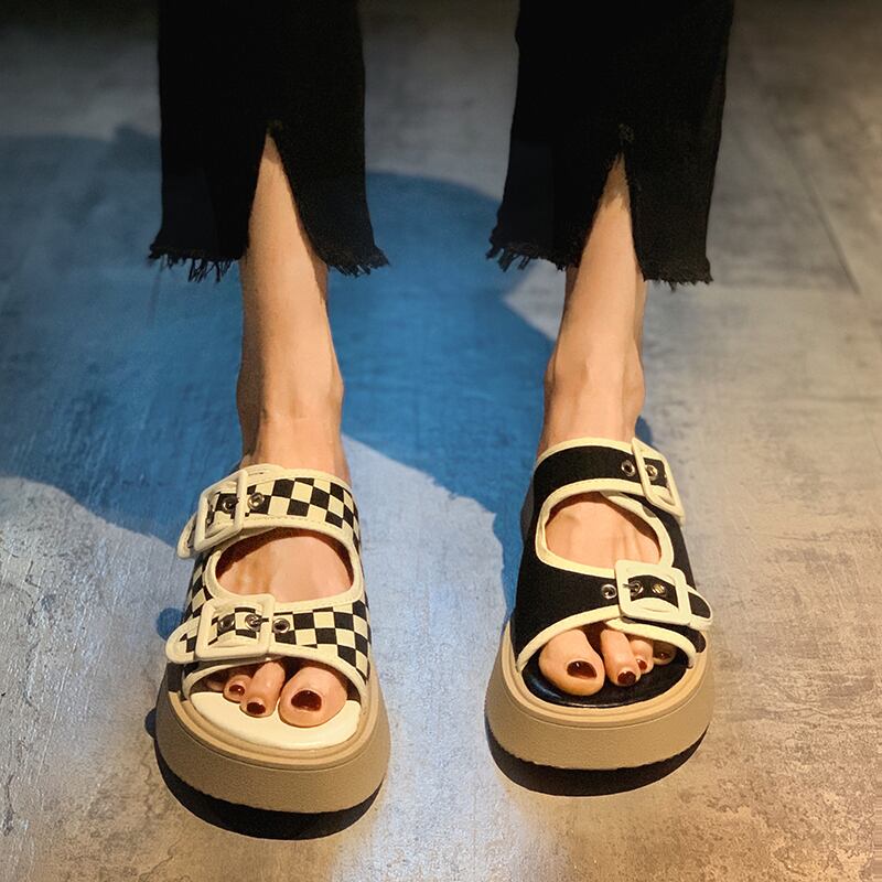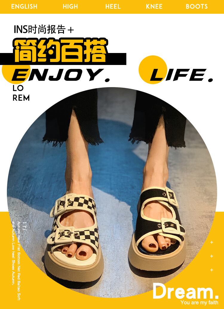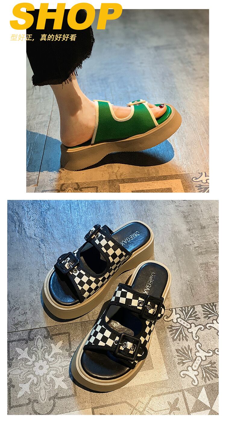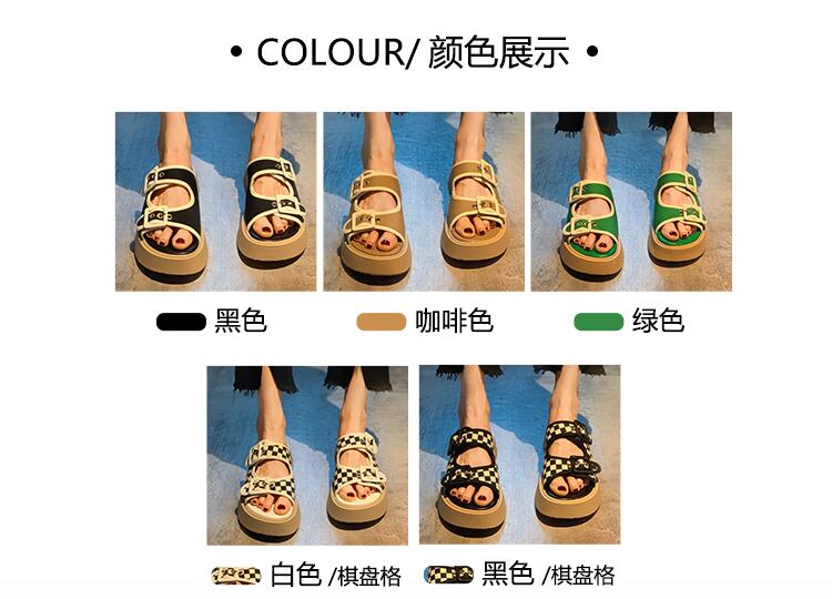 サンダルとスリッパ女性の2022年夏の新しいベルトバックルスポンジケーキ滑り止めネットレッドファッションオールマッチワンワードスリッパ ミュール 靴 シューズ サマー 夏物 ハーネス jxjxf88156225121