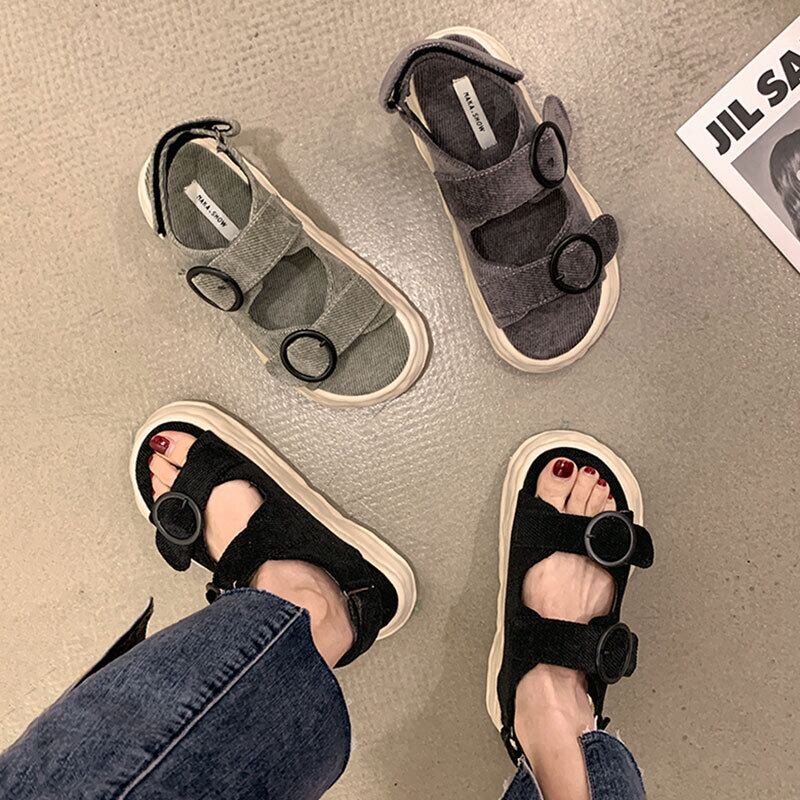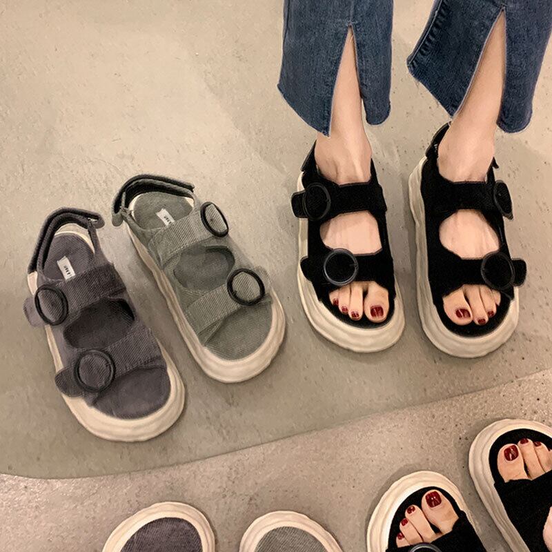 サンダルレディース2022夏の新しいベルトバックル厚い底滑り止めネット赤いファッションオールマッチスポーツローマの靴 シューズ レッド サマー 夏物 ハーネス jxjxf64006808772