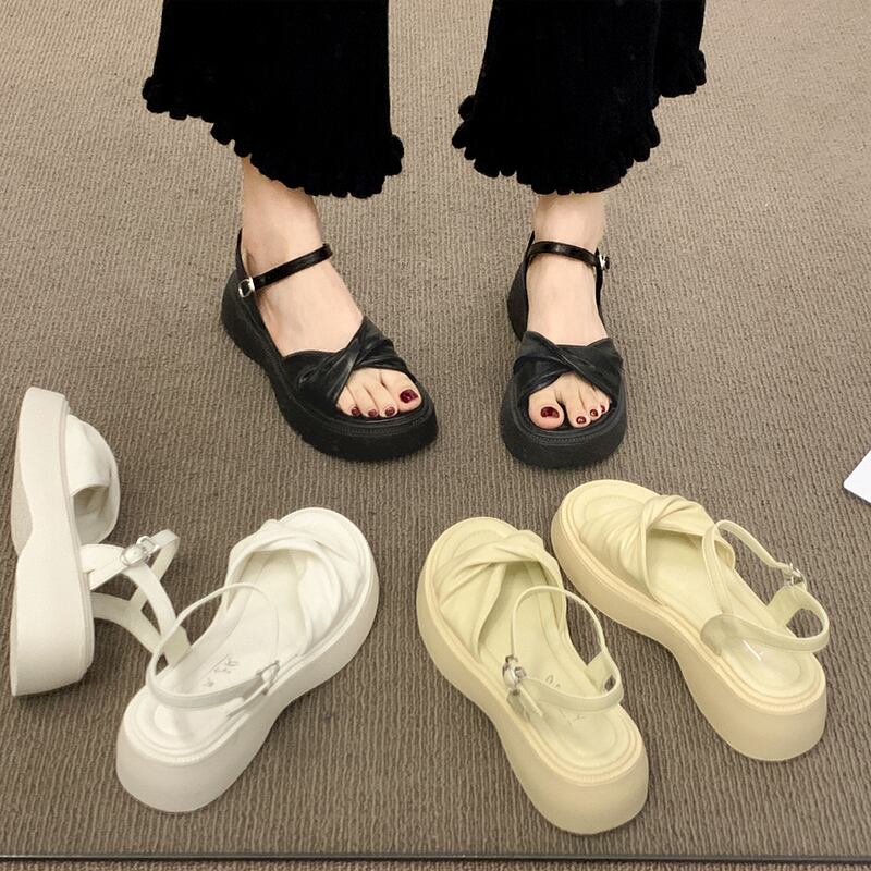 レトロなローマの靴の女性の2022年夏の新しいスポンジケーキ滑り止めネット赤いファッションオールマッチ小さな優しいサンダル シューズ レッド サマー 夏物 jxjxf79772951471
