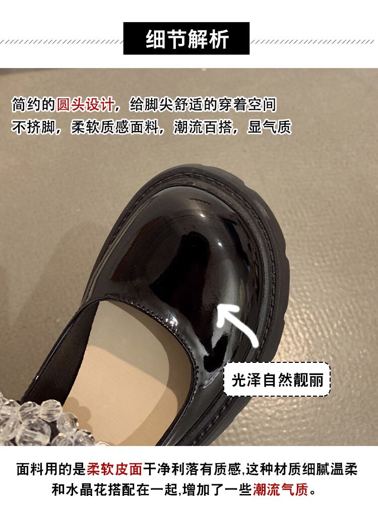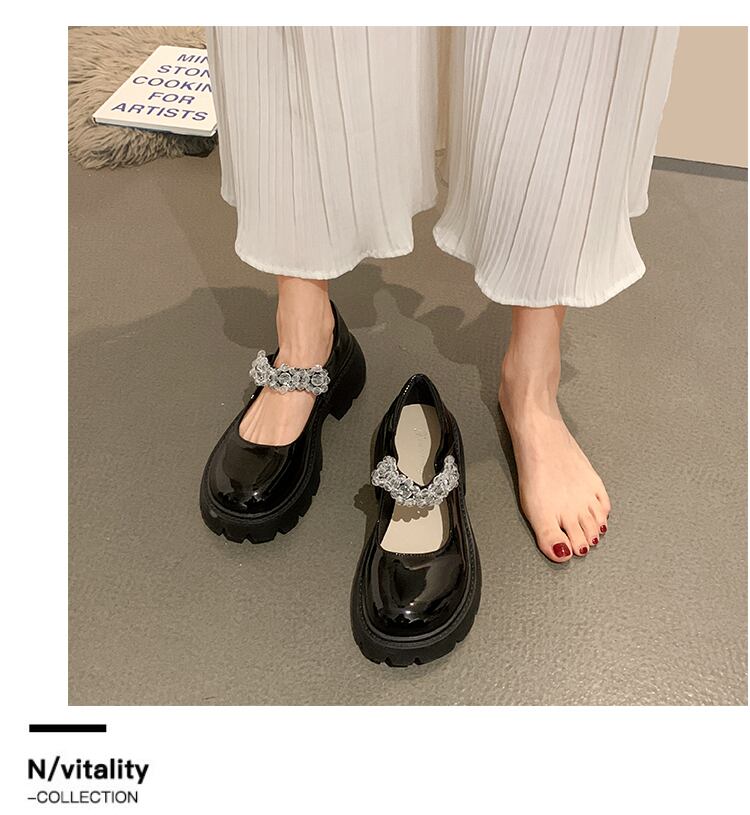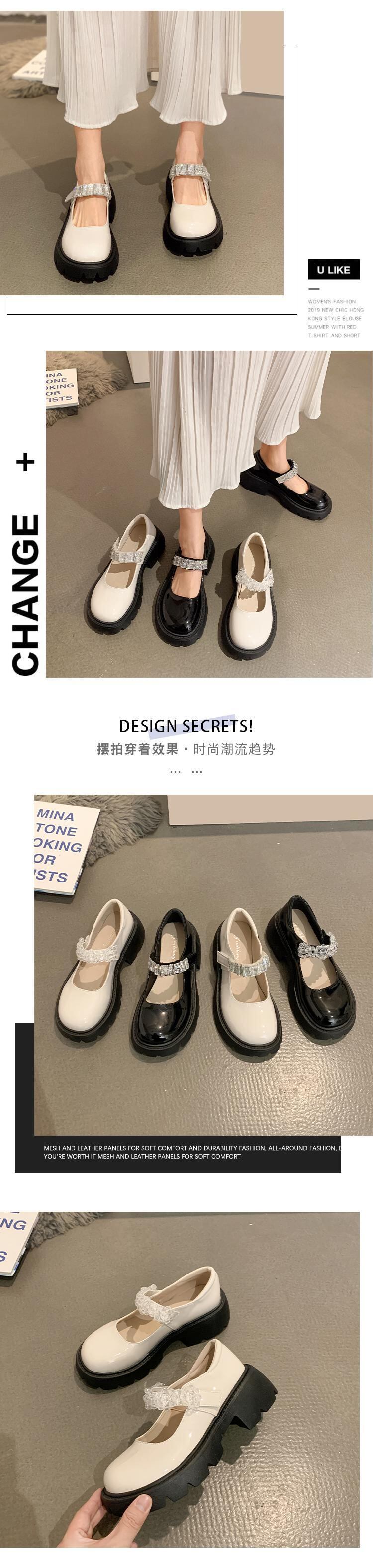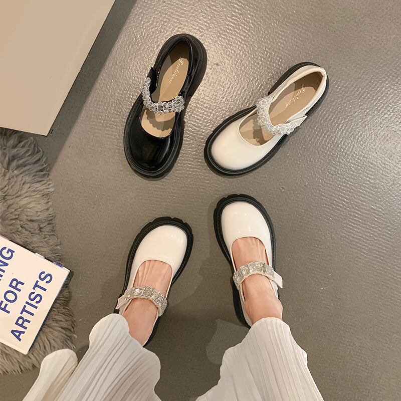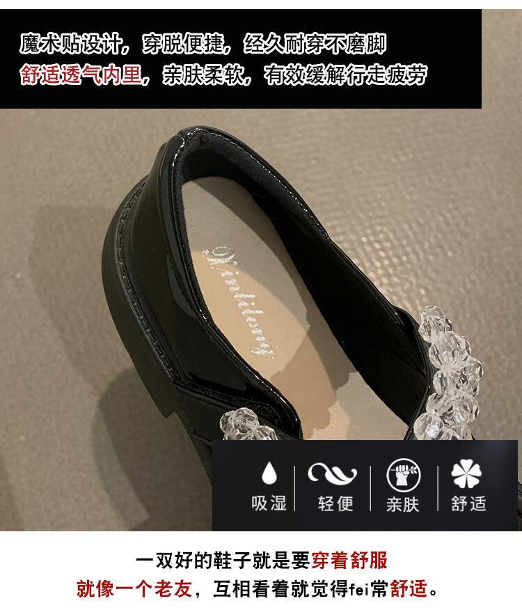 シングルシューズレディース2022年春新作ファッションオールマッチラインストーンベルクロ浅い口厚ヒール滑り止めメアリージェーンシューズタイド 靴 スプリング 春物 jxjxf21328285966