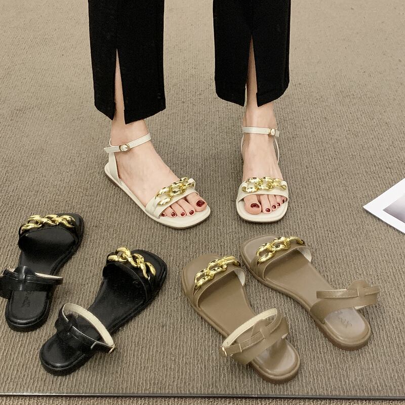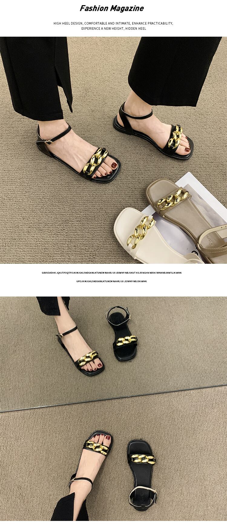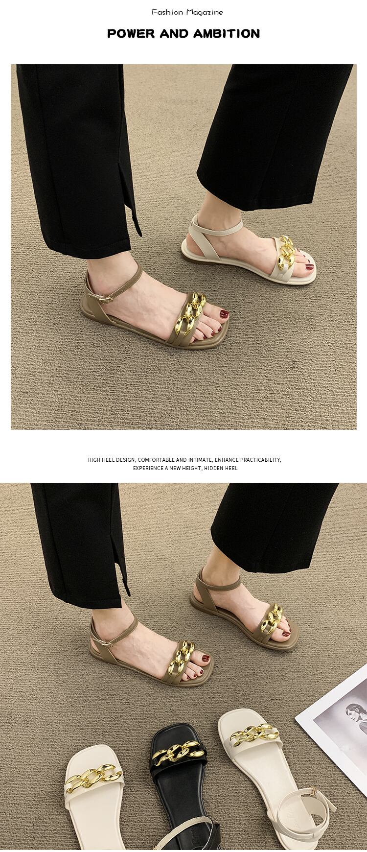 サンダル女性の潮汐2022年夏の新しいファッションオールマッチレトロメタルワードフラット滑り止めローマの靴 シューズ サマー 夏物 jxjxf87732628844