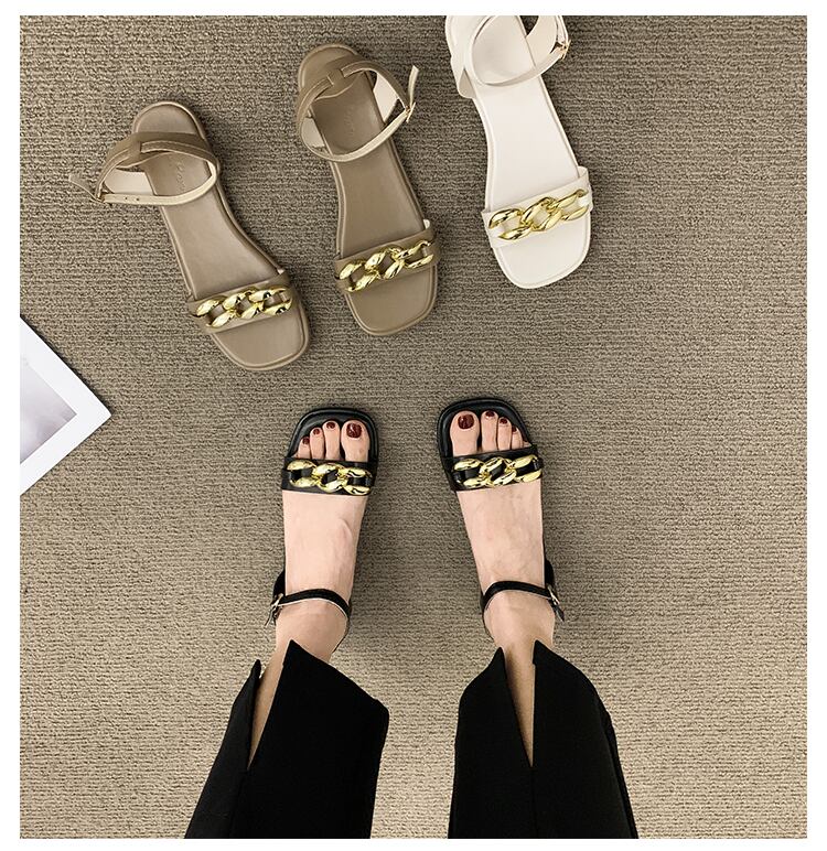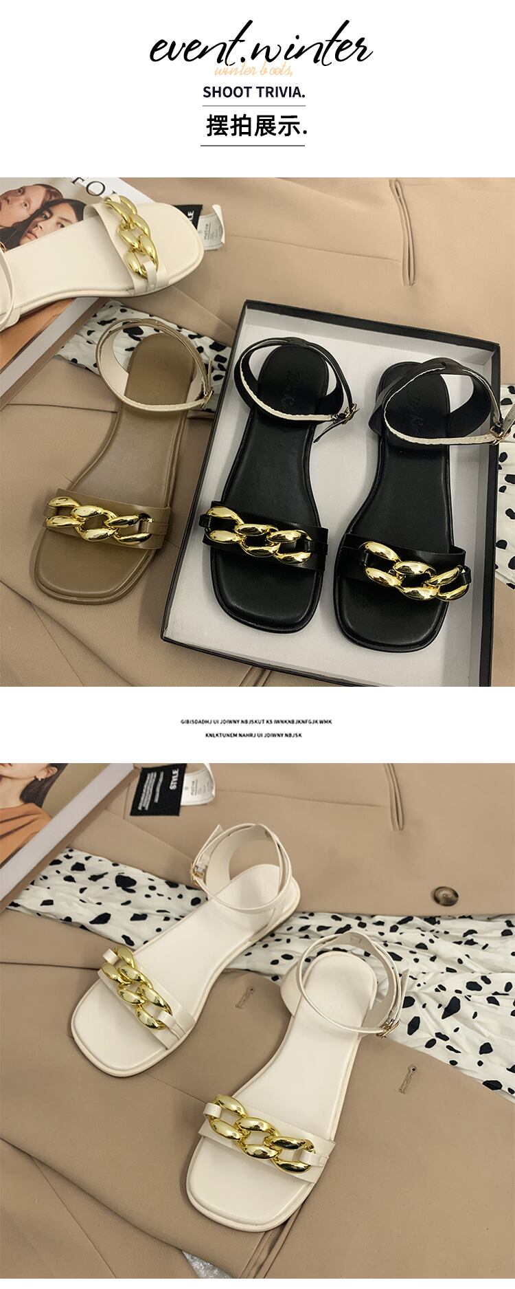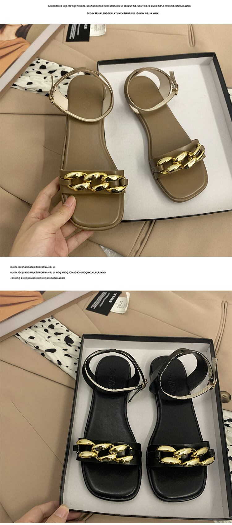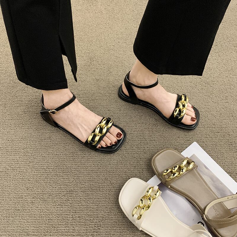 サンダル女性の潮汐2022年夏の新しいファッションオールマッチレトロメタルワードフラット滑り止めローマの靴 シューズ サマー 夏物 jxjxf87732628844