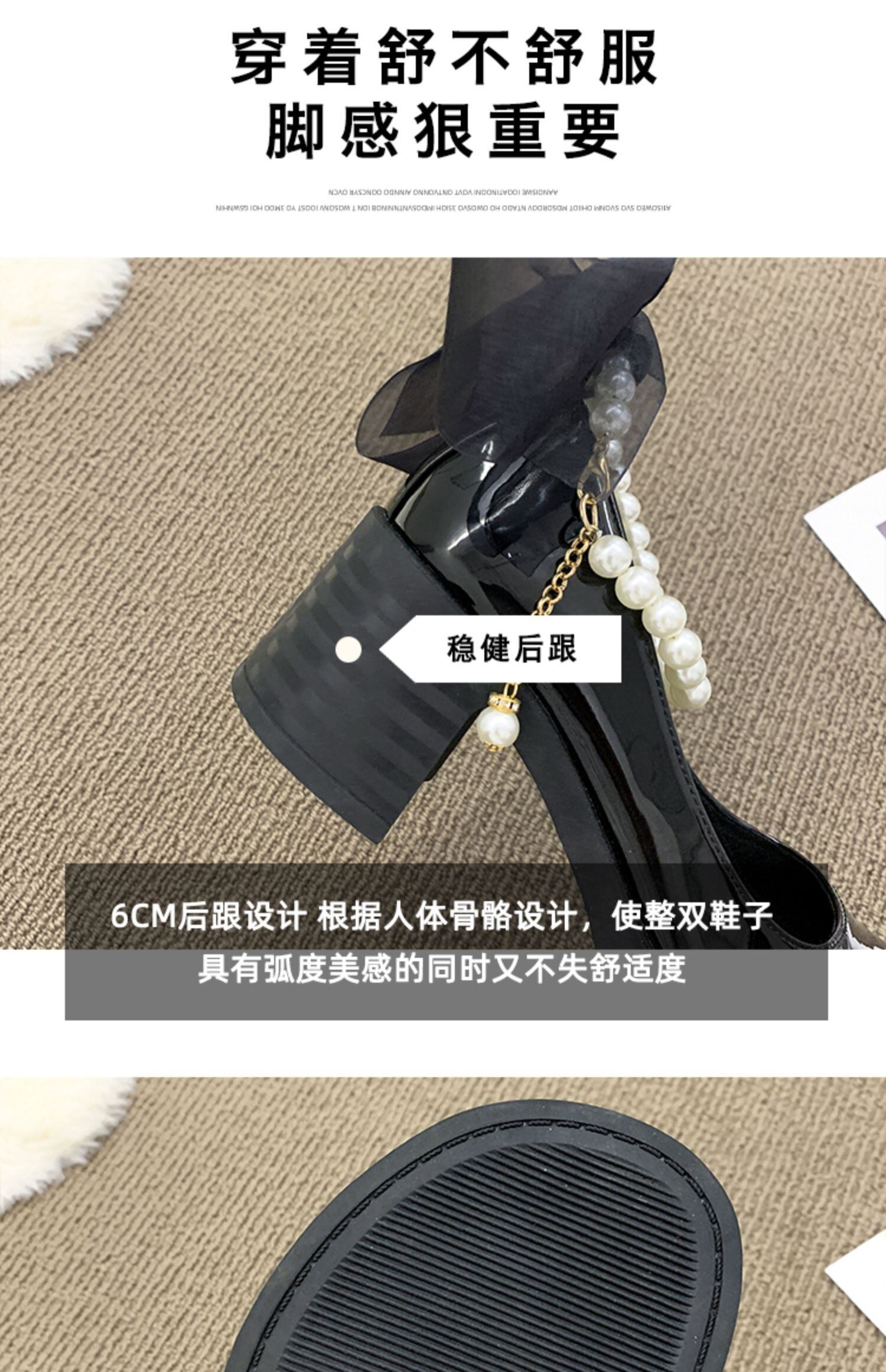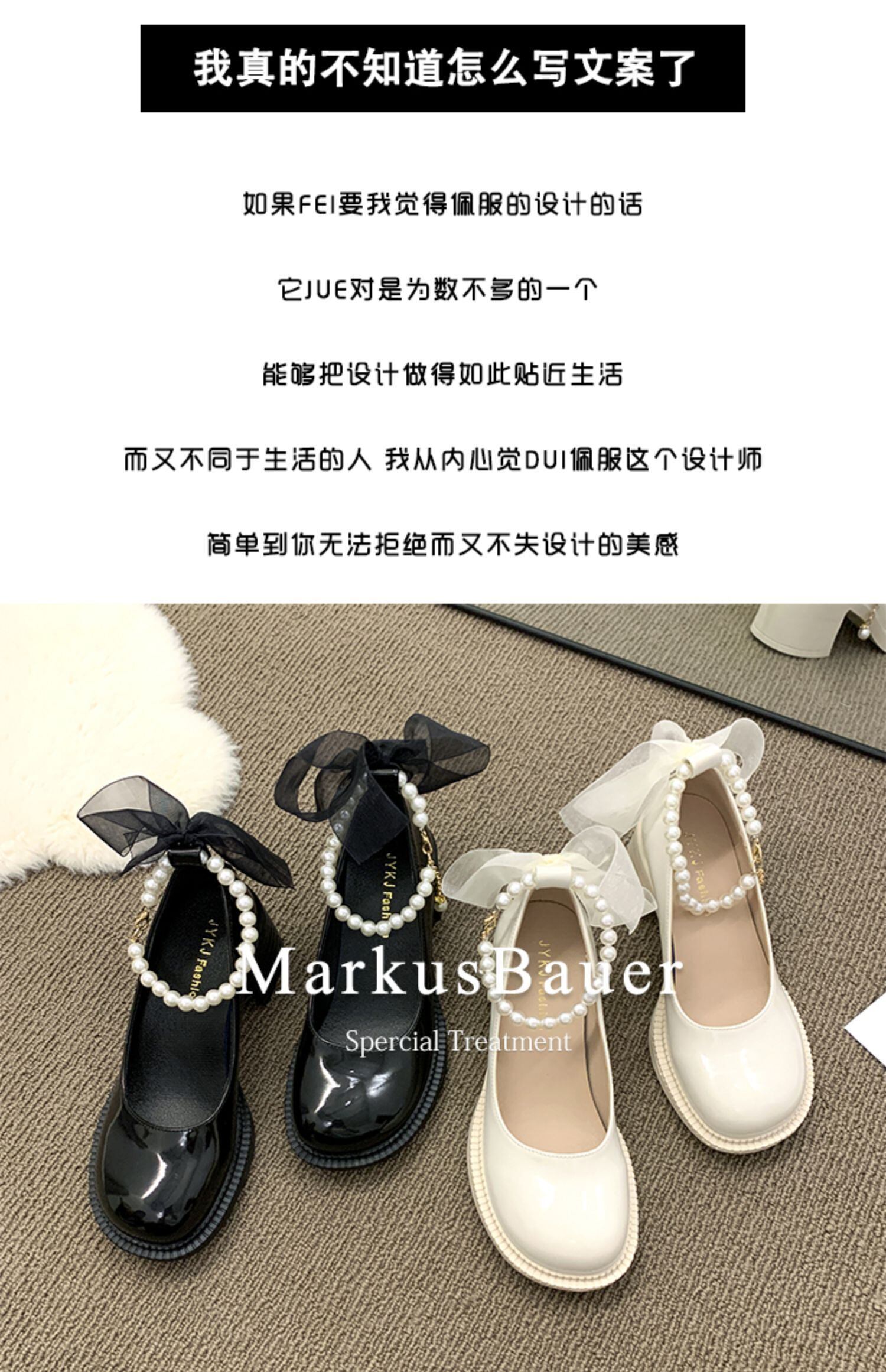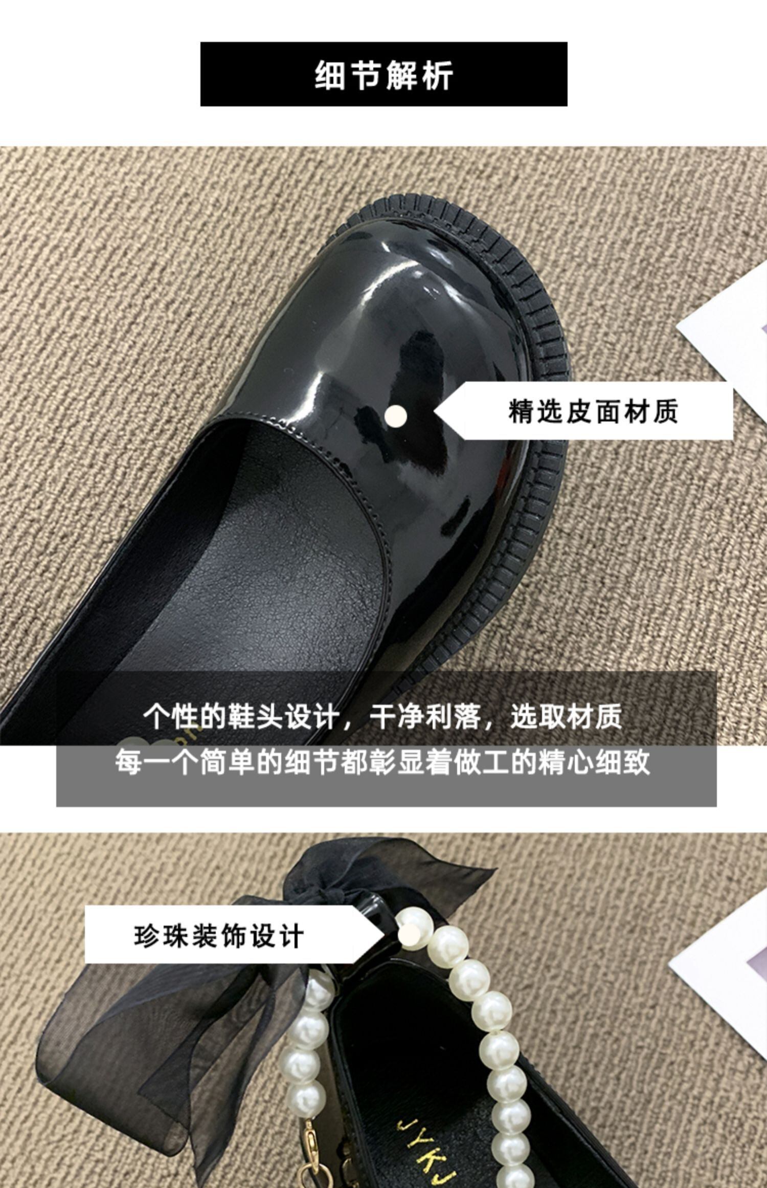 小さな革の靴女性の2022年春の新しい真珠の丸い頭の厚いかかと滑り止めネット赤い超火の妖精の風メアリージェーンの靴 シューズ レッド スプリング 春物 レザー パール jxjxf44100317316