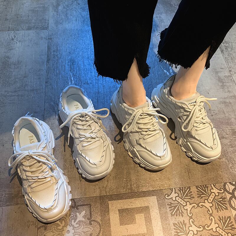 スニーカーレディース2022年春の新しい通気性のあるレースアップ厚底滑り止めネットレッドファッションオールマッチ小さなお父さんの靴 シューズ スプリング 春物 jxjxf88310275258