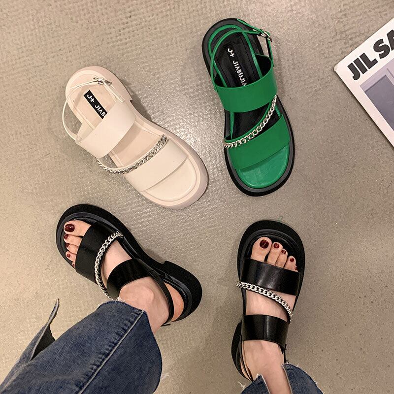 サンダルレディース2022夏の新しいチェーン太いヒール滑り止めネットレッドファッションオールマッチレトロローマの靴instide シューズ サマー 夏物 jxjxf78716104037