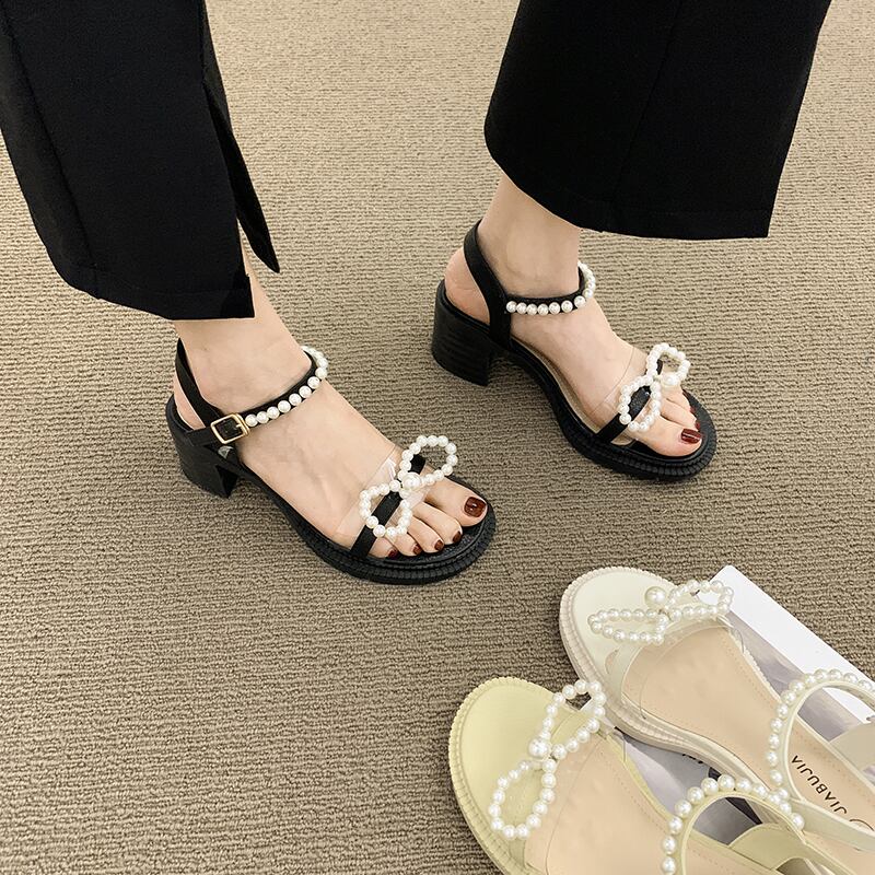サンダルレディースサマーファッション2022新しいスーパーファイアオールマッチパールシックヒールノンスリップフェアリースタイルハイヒール 靴 シューズ 夏物 真珠 jxjxf36164177568