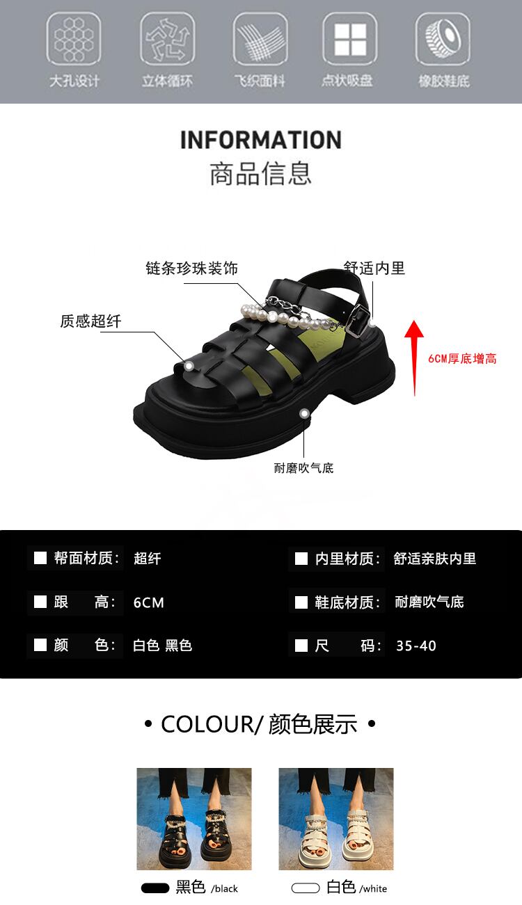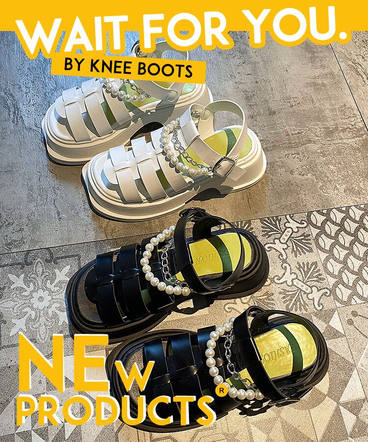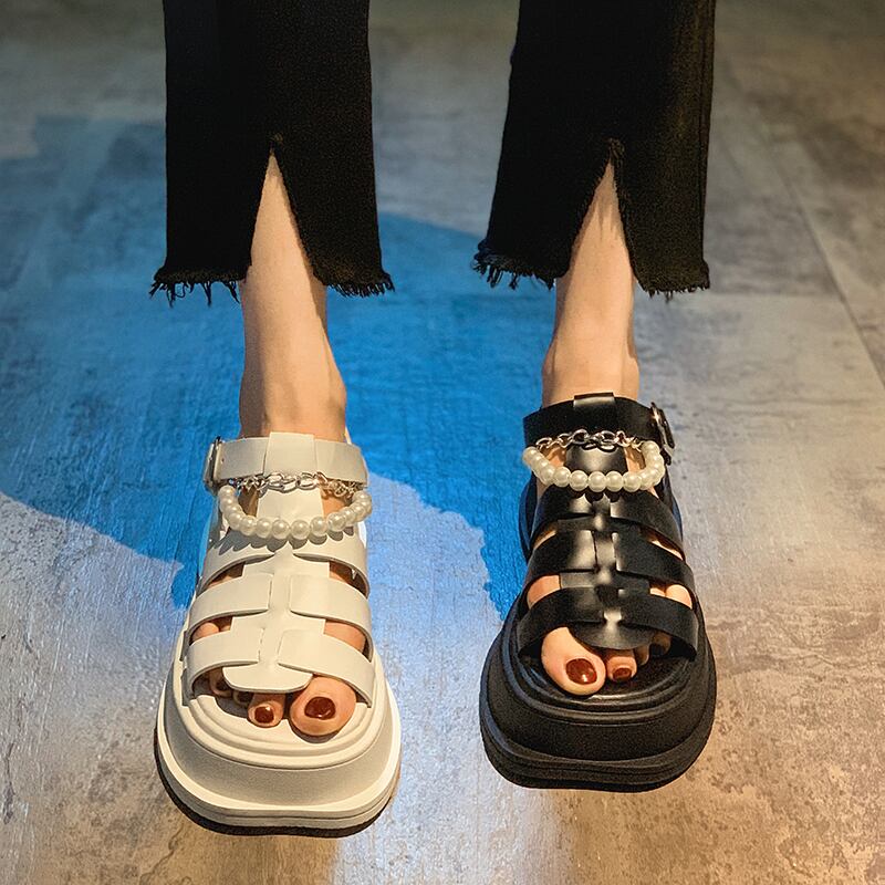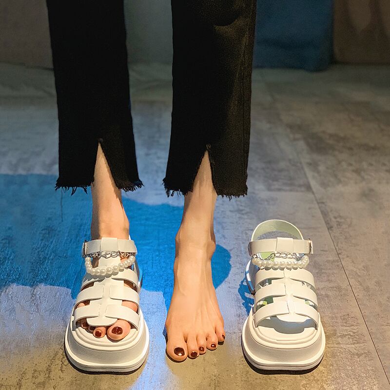 サンダル女性の潮汐2022年夏の新しいファッションオールマッチパールチェーン厚手のヒール滑り止めスポーツビーチシューズ 靴 サマー 夏物 真珠 jxjxf73781071904