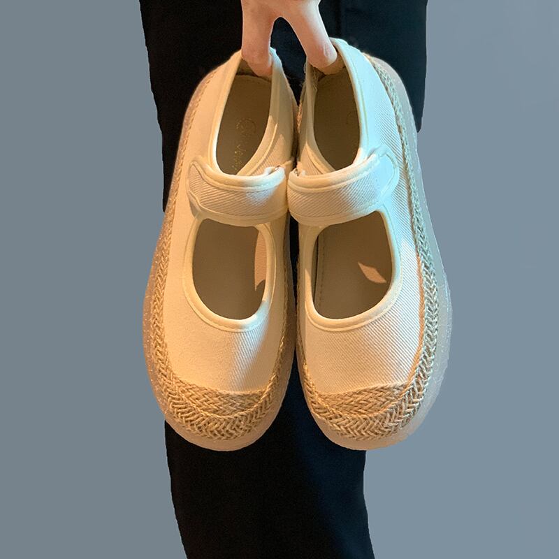 靴女性の2022年春の新しいファッションオールマッチ学生ベルクロラウンドヘッドフラット滑り止めキャンバスシューズトレンド スプリング 春物 jxjxf43623524761