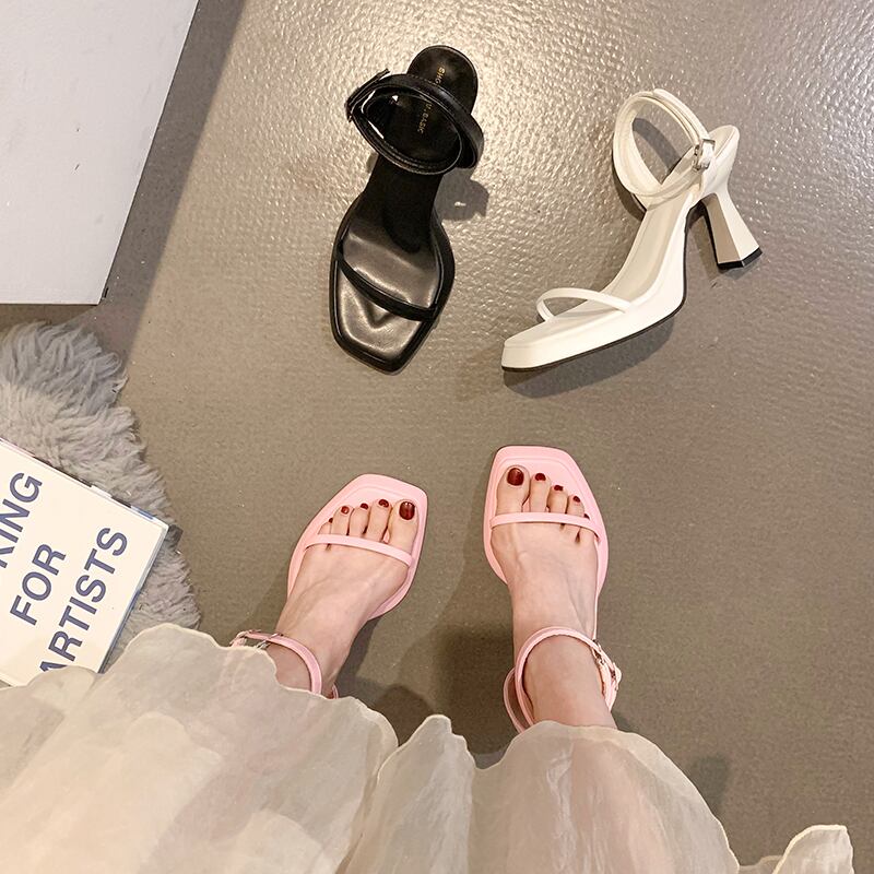 かかとの女性の2022年夏の新しいスティレットファッションオールマッチ小さな妖精スタイルのレトロなサンダルの潮 ヒール 靴 シューズ サマー 夏物 jxjxf26675614017