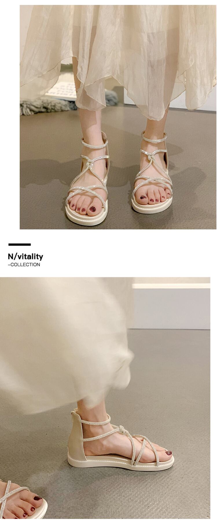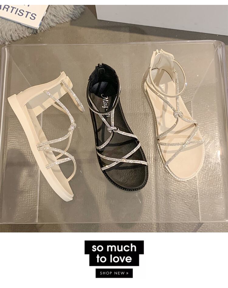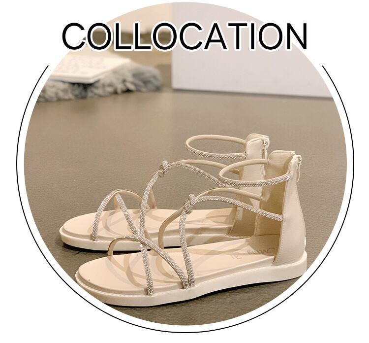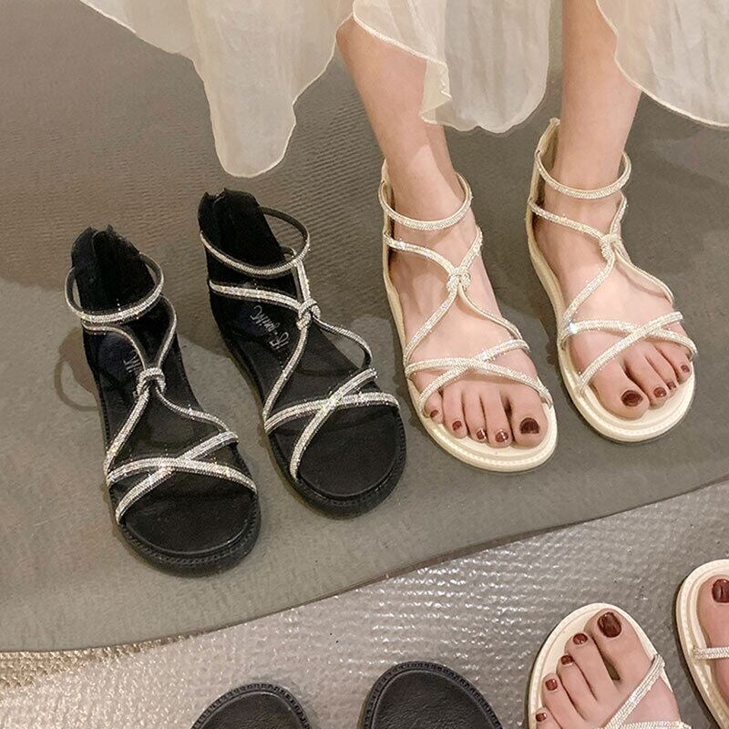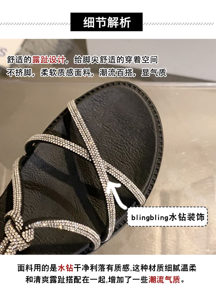 サンダル女性の潮2022年夏の新しいスーパーファッションオールマッチラインストーンフラットボトム滑り止めの妖精スタイルのローマの靴 シューズ サマー 夏物 jxjxf67253725945