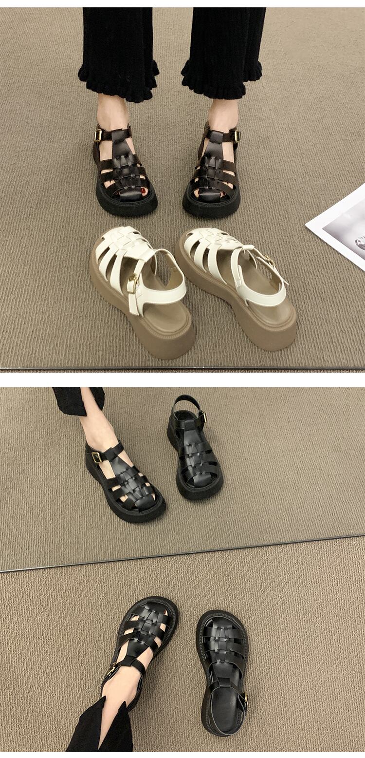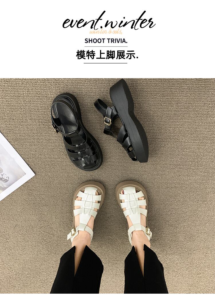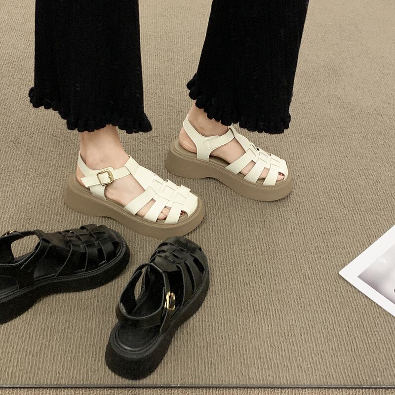 包頭サンダルレディース2022夏の新しい厚い底滑り止めネット赤いファッションオールマッチ小さなレトロなローマの靴 シューズ レッド サマー 夏物 jxjxf45955879034