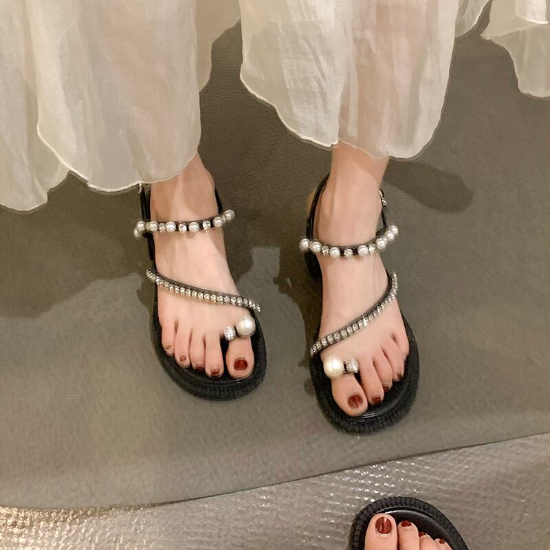 サンダルレディーススカート2022夏の新しいスーパーファッションパールラインストーンセットつま先厚いヒール滑り止めハイヒール 靴 シューズ サマー 夏物 真珠 jxjxf39897488045