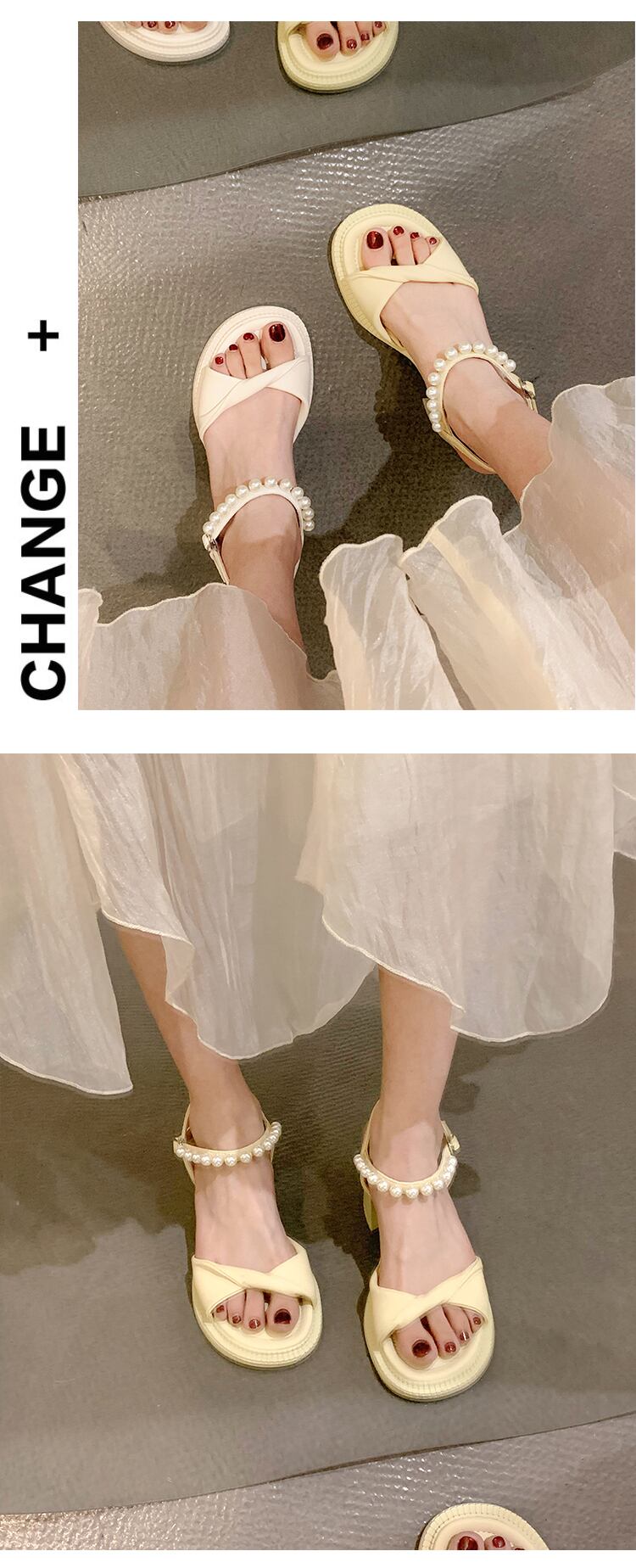 フェアリースタイルサンダルレディース2022夏ニューパールシックヒールノンスリップファッションオールマッチ優しいレトロハイヒール 靴 シューズ サマー 夏物 真珠 jxjxf70780438737