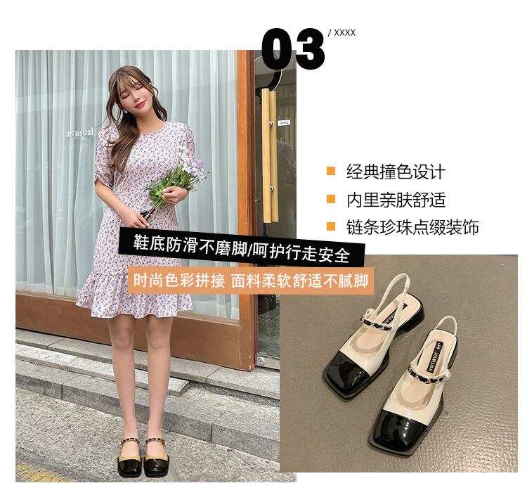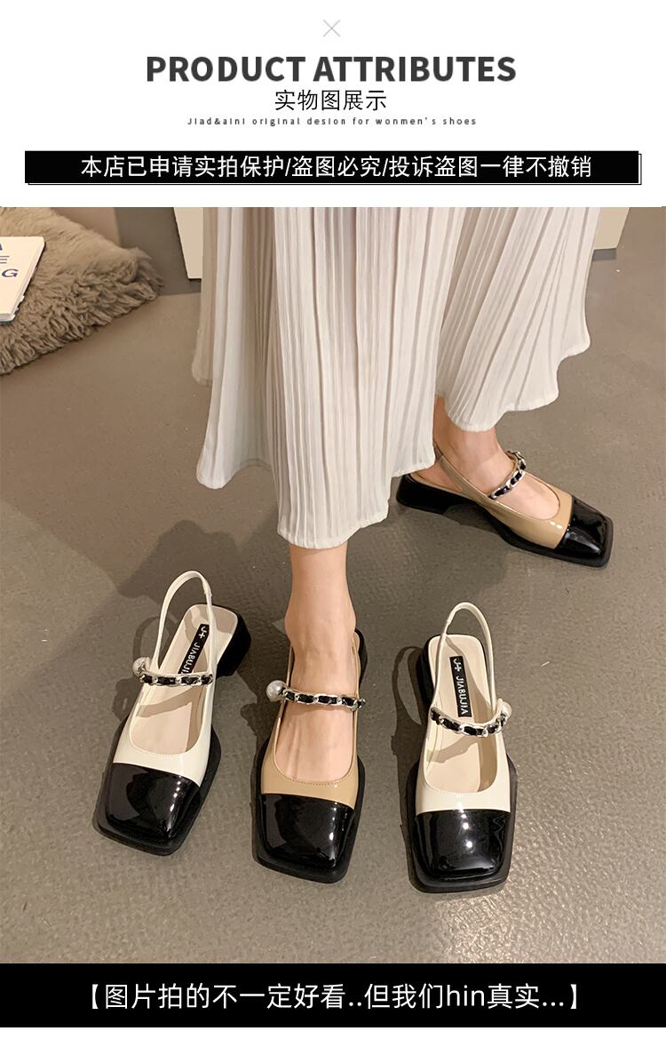 包頭サンダルレディース2022サマーパールスクエアトゥシックヒールノンスリップネットレッド多用途レトロローマシューズ 靴 夏物 真珠 スクウェア jxjxf58466514033