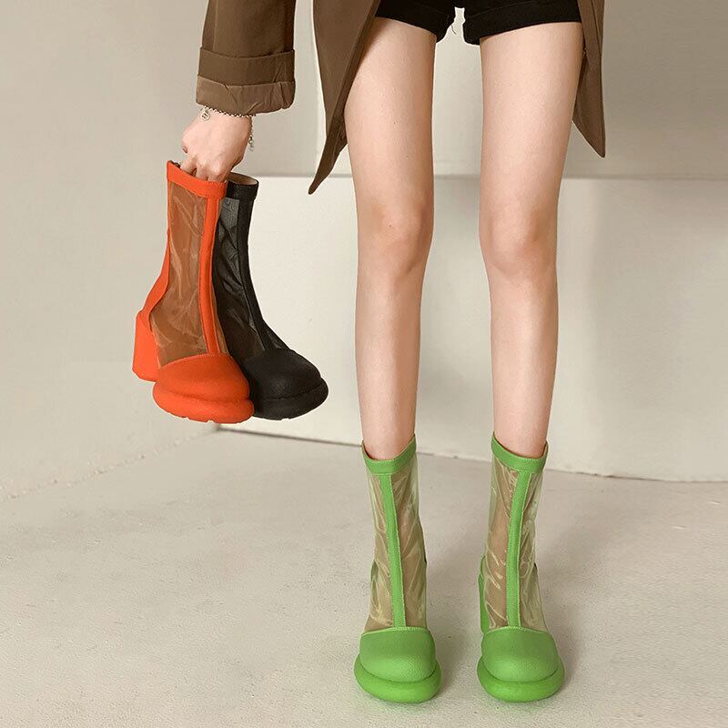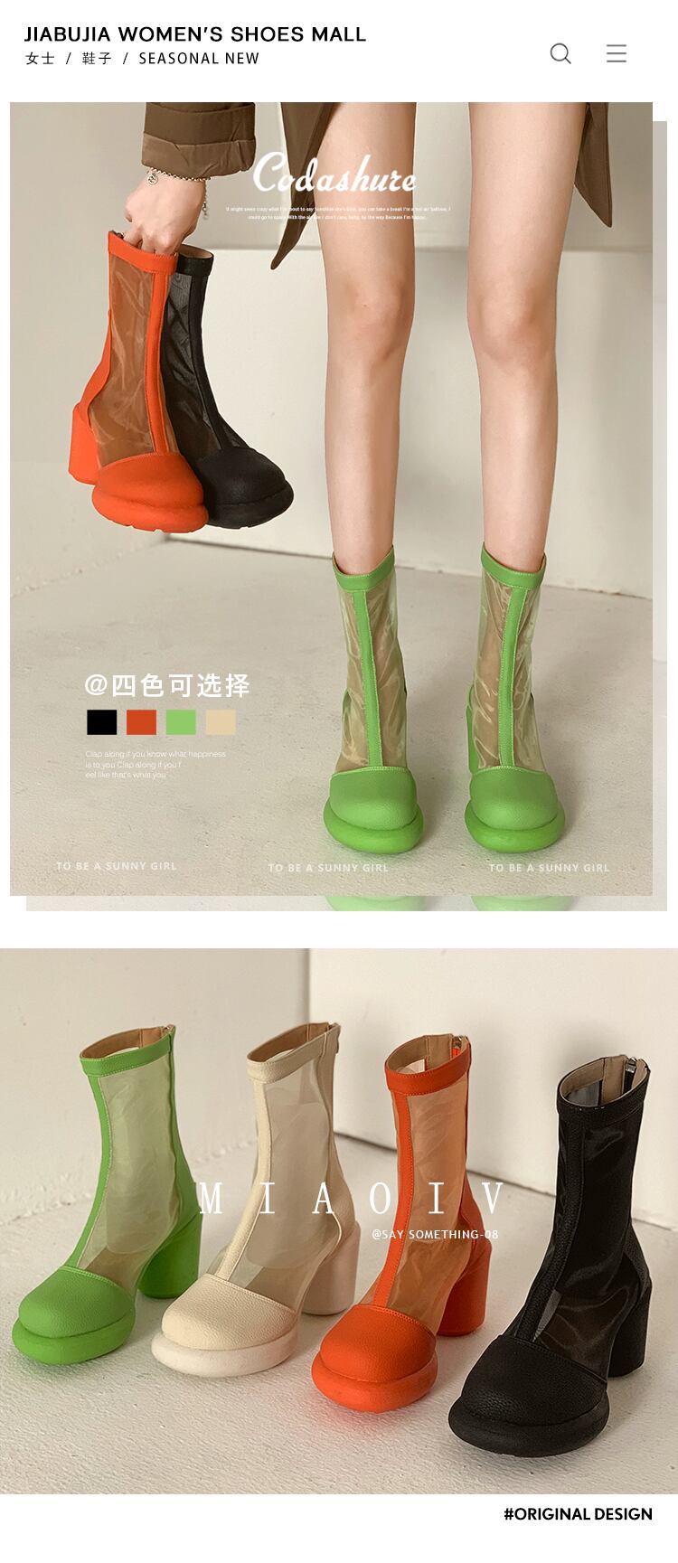 ショートブーツ女性の2022年夏の新しい通気性のある厚いヒール滑り止めファッションオールマッチの小さなヨーロッパとアメリカのストリートレトロクールブーツ 靴 シューズ サマー 夏物 ヨーロピアン jxjxf62200207681