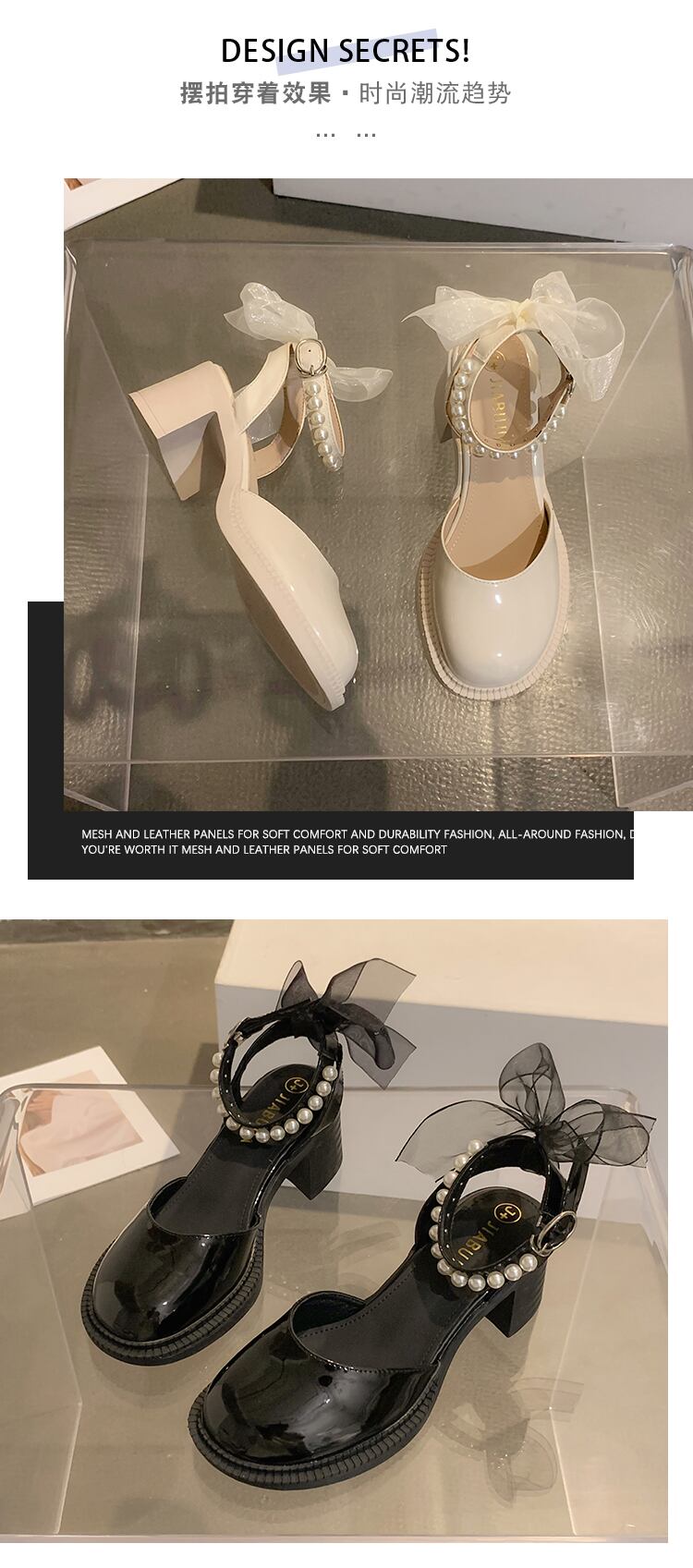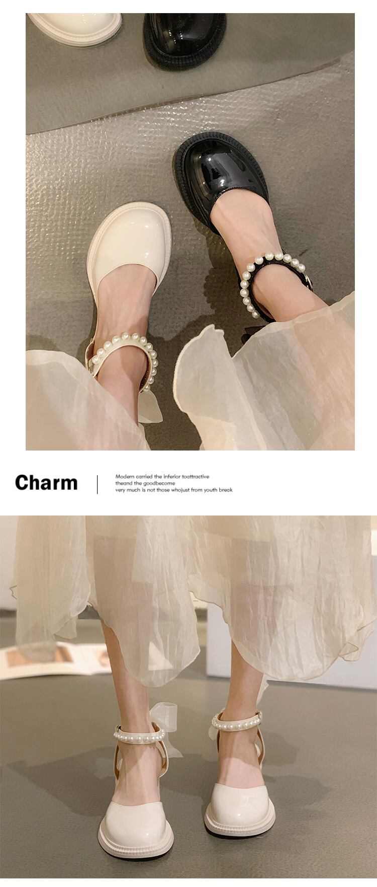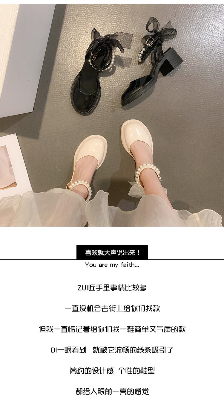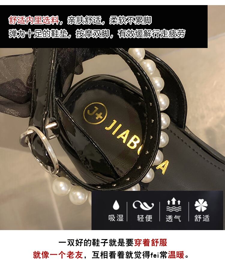 フェアリースタイルのサンダルレディース2022年夏の新しいファッションオールマッチパールバックル厚いヒール滑り止めレトロな小さな革の靴 シューズ サマー 夏物 レザー 真珠 jxjxf37521568228