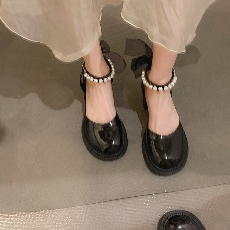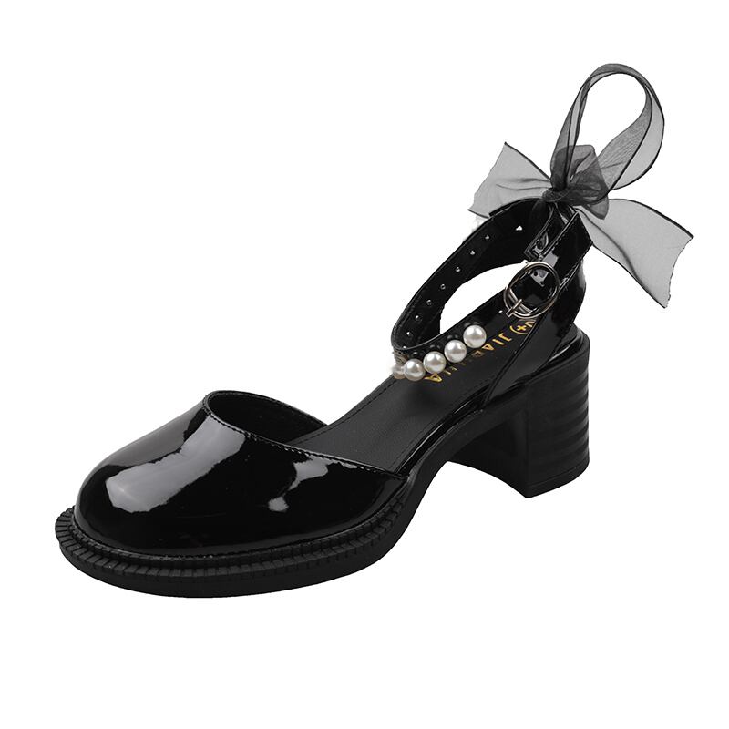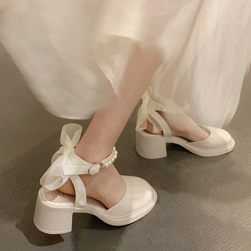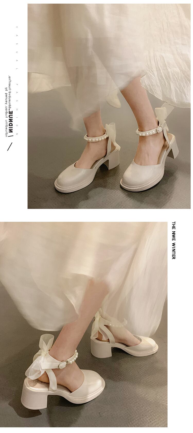 フェアリースタイルのサンダルレディース2022年夏の新しいファッションオールマッチパールバックル厚いヒール滑り止めレトロな小さな革の靴 シューズ サマー 夏物 レザー 真珠 jxjxf37521568228