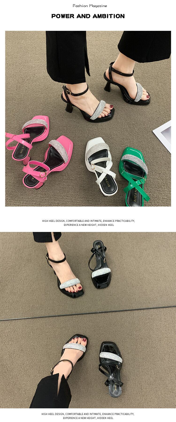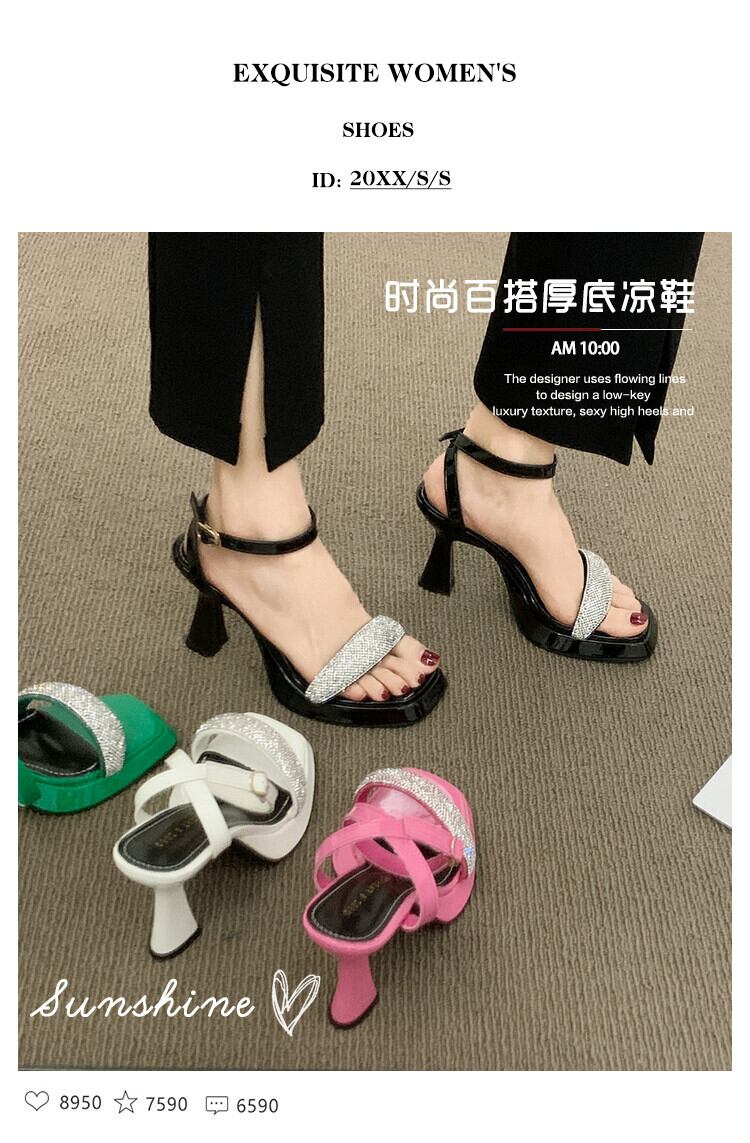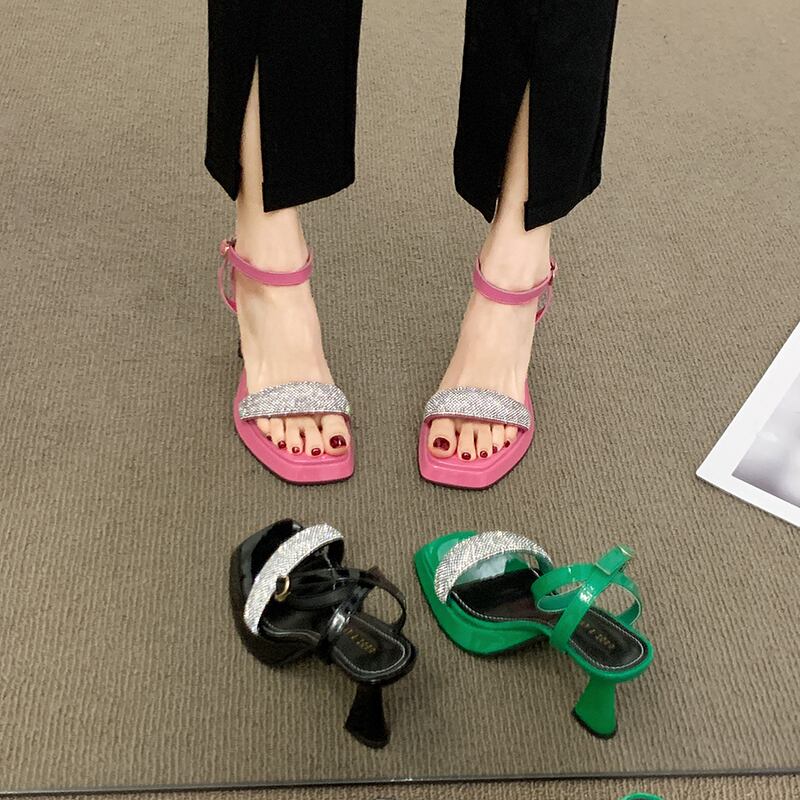 フレンチサンダルレディース2022夏ニューネットレッドフェアリースタイルファッションラインストーンバックルスティレットハイヒール 靴 シューズ サマー 夏物 jxjxf5033019756