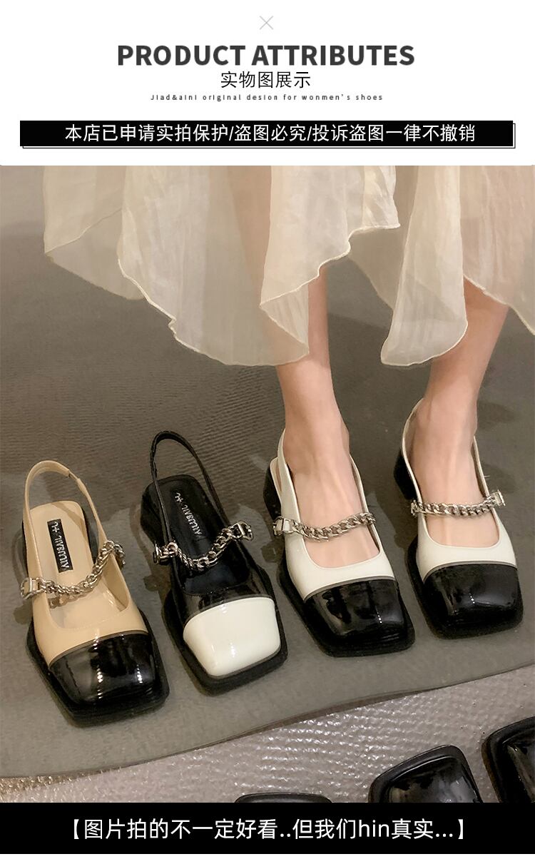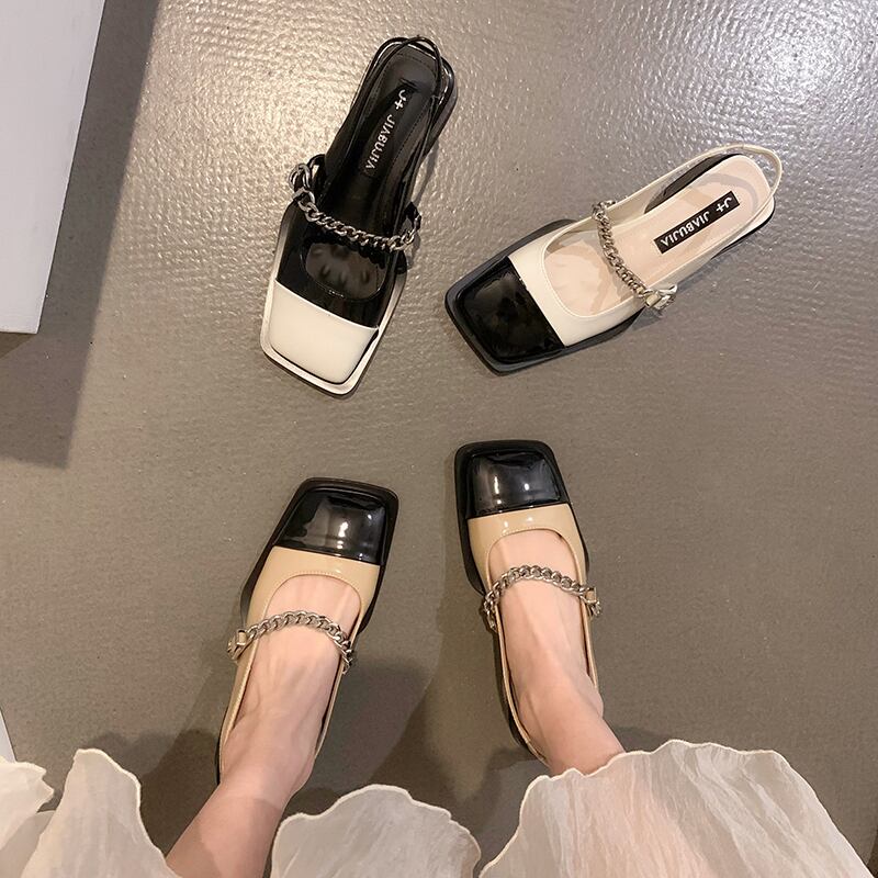 メリージェーンサンダルレディース2022夏の新しいファッションオールマッチレトロチェーンスクエアトゥローヒール滑り止めの小さな革の靴 シューズ サマー 夏物 レザー スクウェア jxjxf55506003189