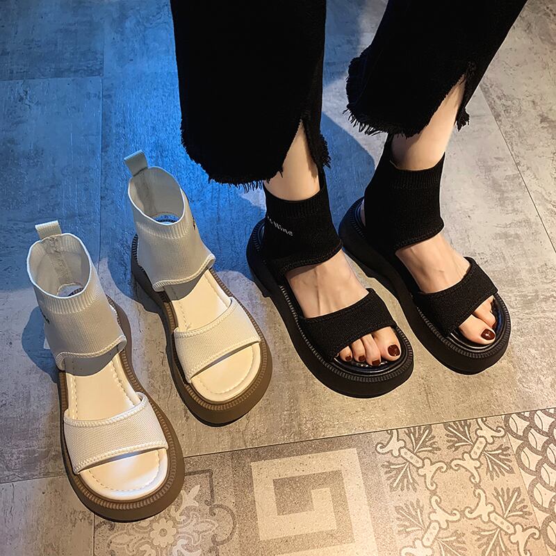 ネットレッドサンダルレディース2022夏の新しいスーパーファッションニット小さな厚い底滑り止めカジュアルサンダル潮 靴 シューズ サマー 夏物 jxjxf15962238894