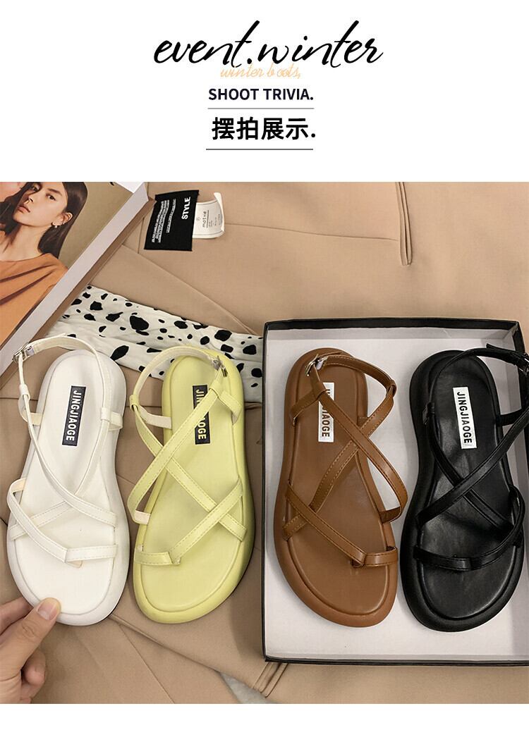 ネットレッドサンダルレディース2022夏の新しいスーパーファッションレトロバックルフラットボトム滑り止めセットトゥビーチシューズタイド 靴 サマー 夏物 jxjxf81242394605