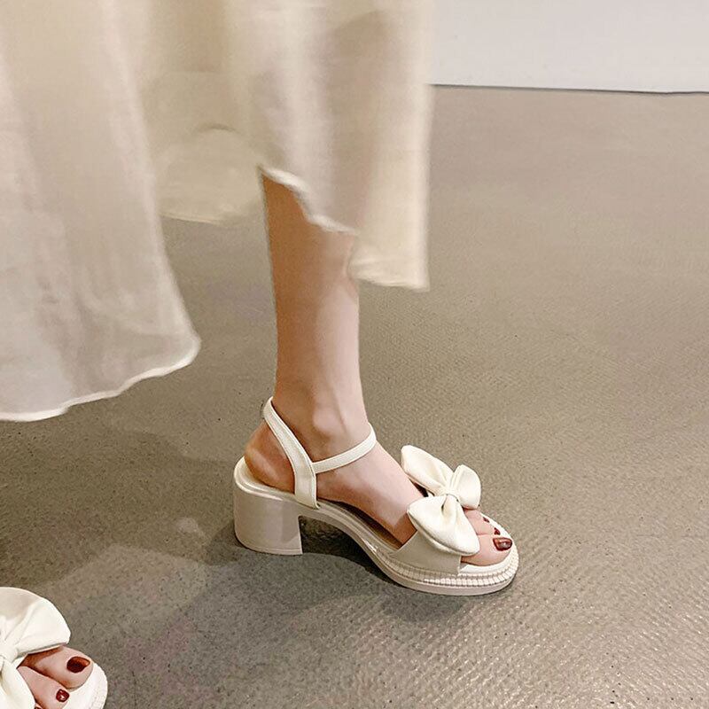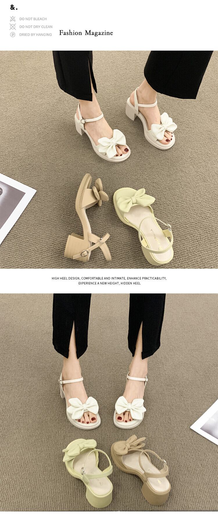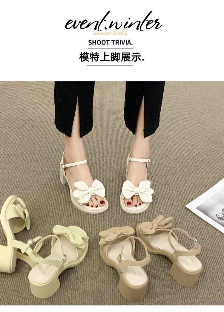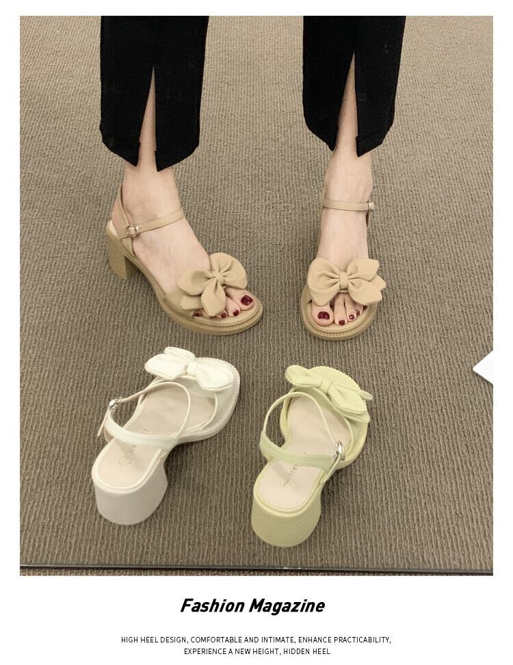 サンダルレディース2022年夏の新しい弓太いヒール滑り止めスーパーファッションオールマッチフェアリースタイル優しいハイヒール リボン 靴 シューズ サマー 夏物 jxjxf14210559245