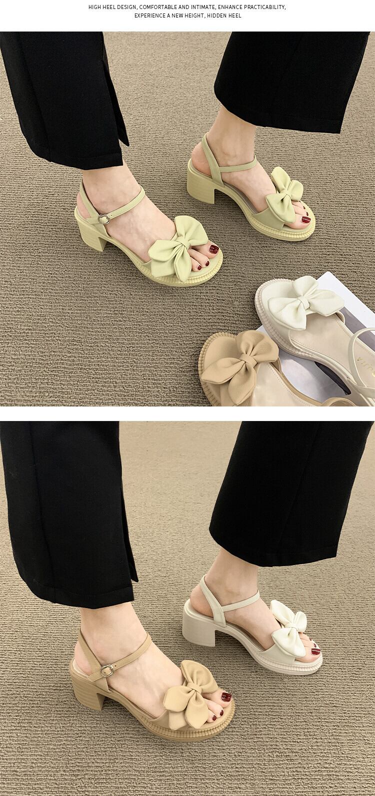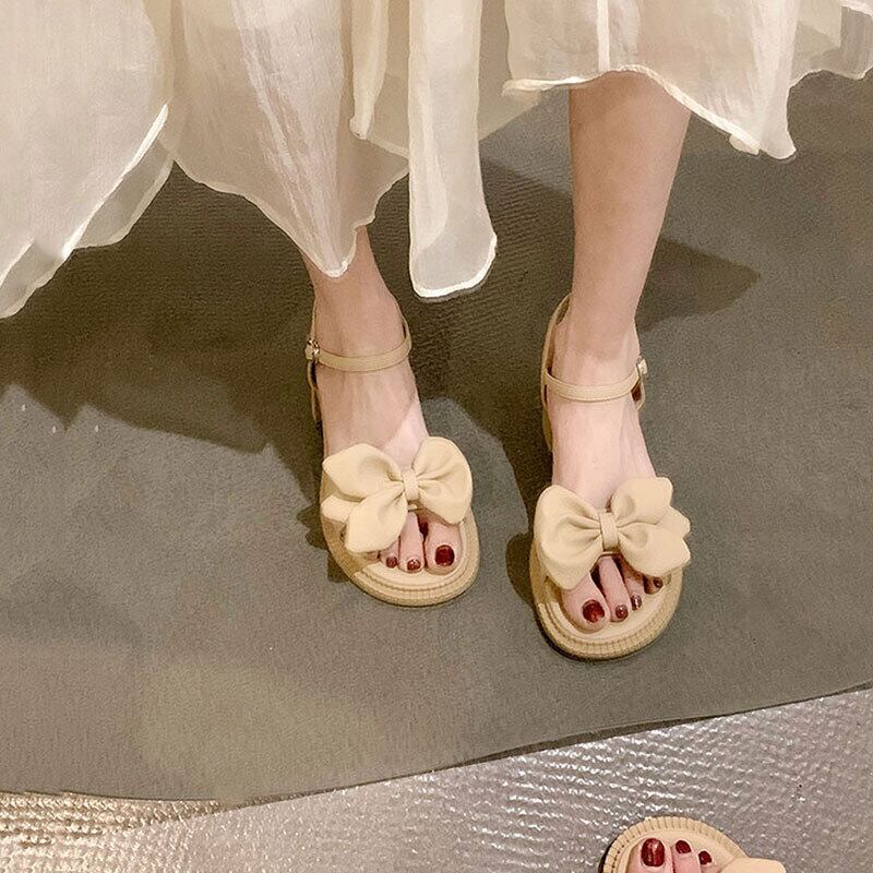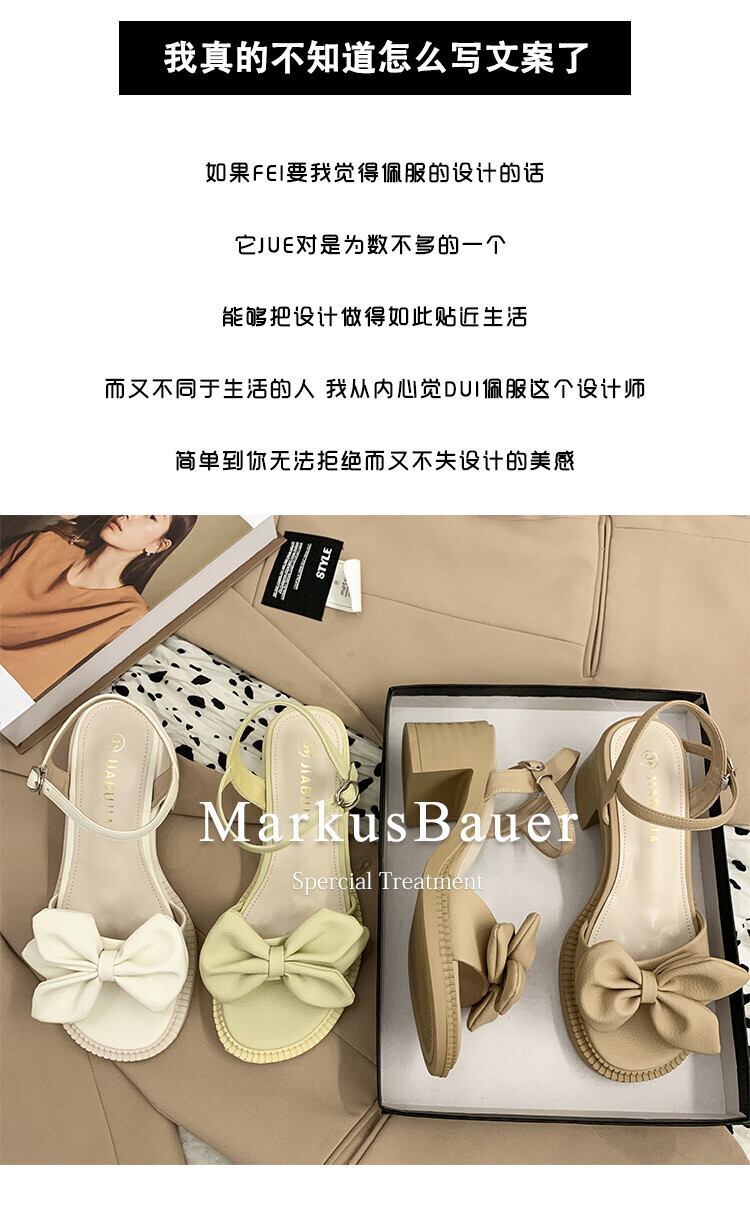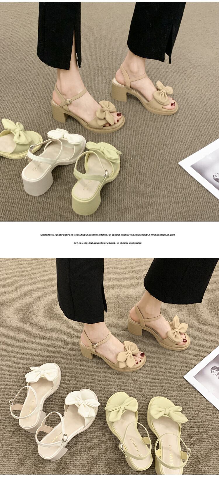 サンダルレディース2022年夏の新しい弓太いヒール滑り止めスーパーファッションオールマッチフェアリースタイル優しいハイヒール リボン 靴 シューズ サマー 夏物 jxjxf14210559245