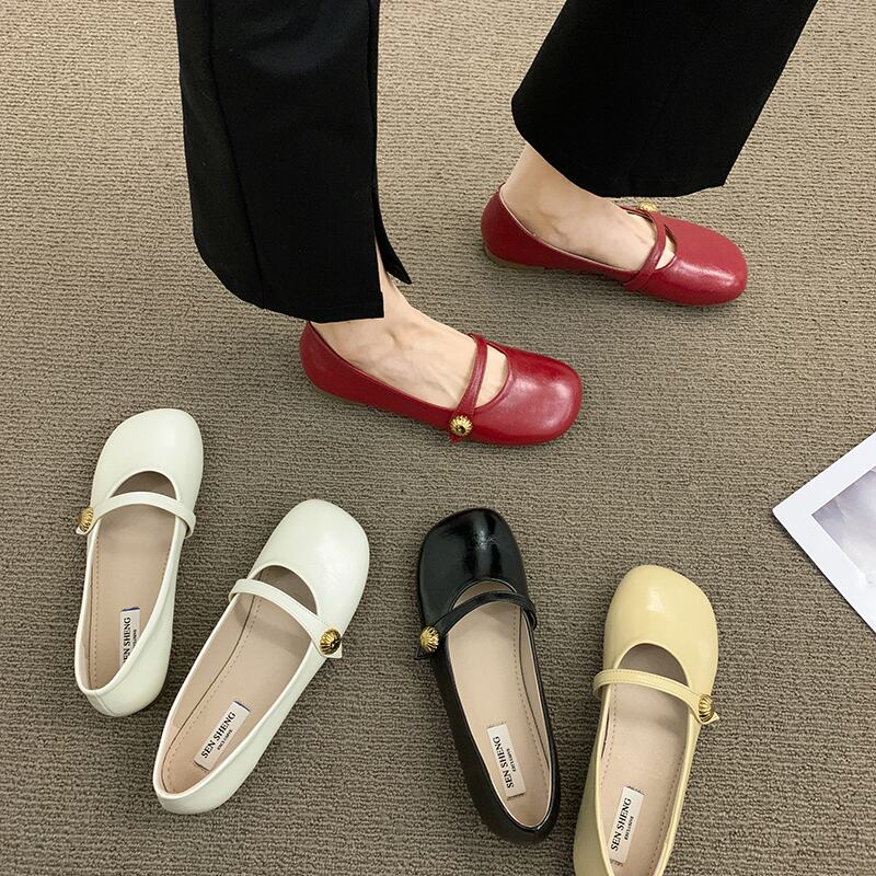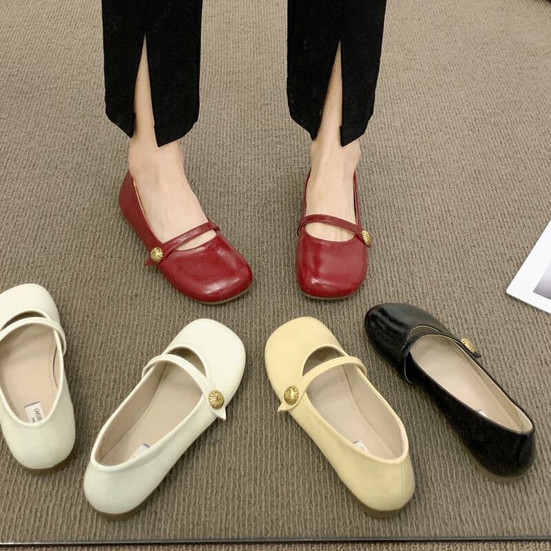 レトロなシングルシューズの女性の2022年夏の新しいスーパーファッションオールマッチ穏やかな浅い口フラット滑り止めの小さな革の靴の潮 サマー 夏物 レザー jxjxf45210705387
