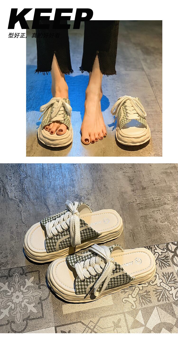 一言ビーチサンダル女性の2022年夏の新しい千鳥格子厚底滑り止めファッションオールマッチカジュアルディゾルブスリッパ ミュール 靴 シューズ サマー 夏物 jxjxf20745571945