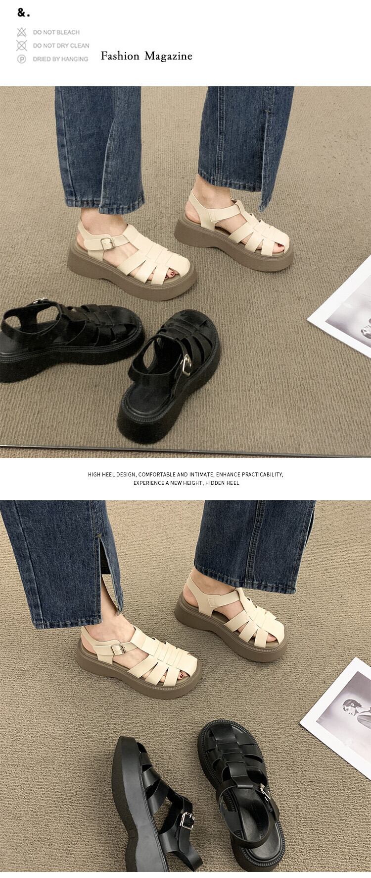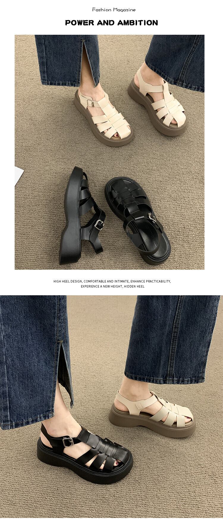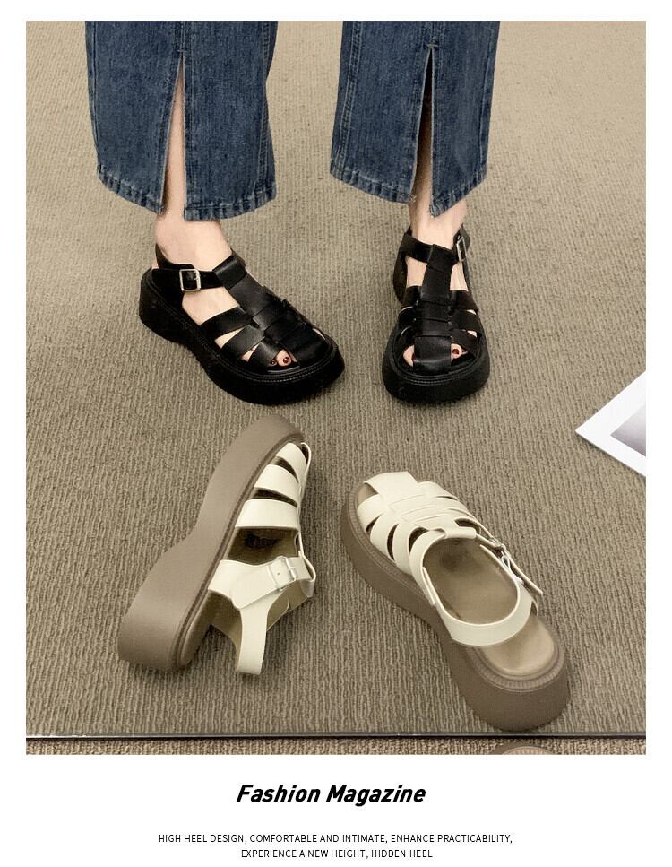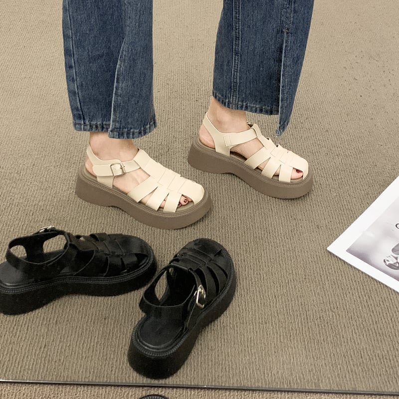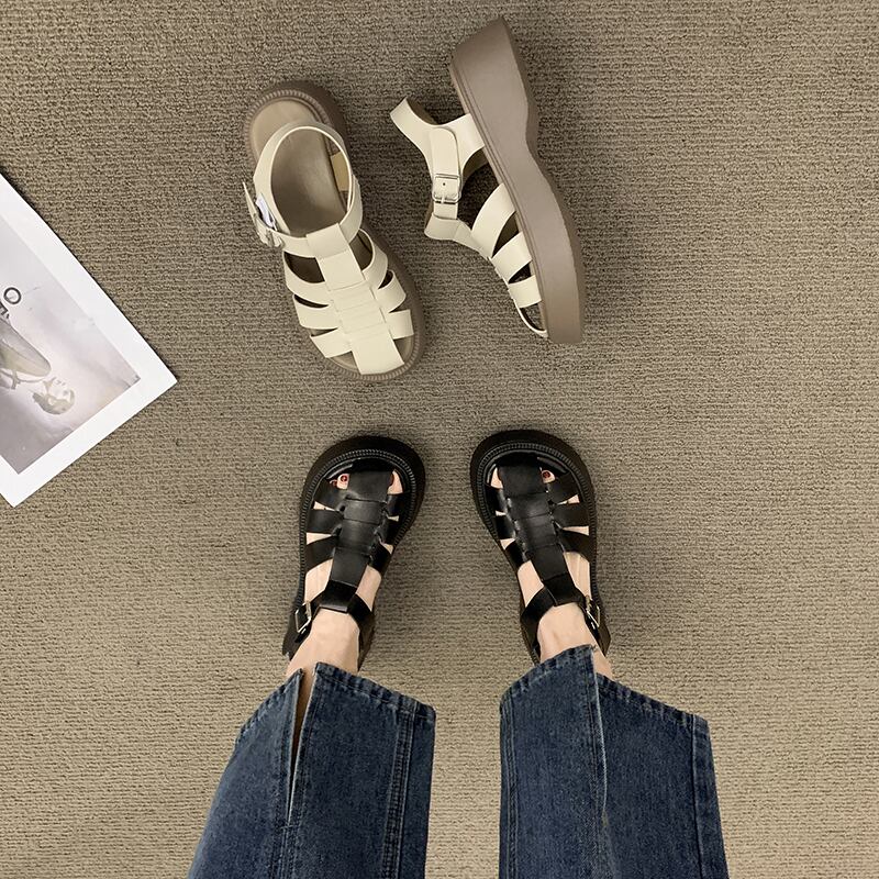 ローマのサンダルレディース2022年夏の新しいファッションオールマッチ小さなレトロバックル厚い底滑り止めビーチシューズ 靴 サマー 夏物 jxjxf66432953032
