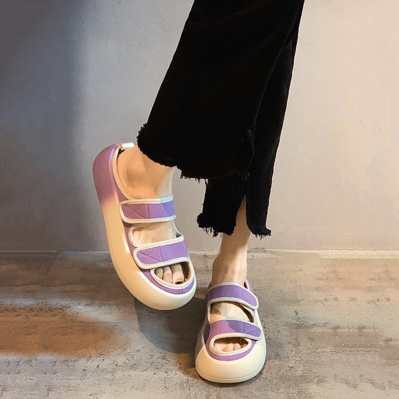包頭ドラッグ女性サマーウェア2022新しいファッションオールマッチベルクロ学生スポンジケーキ厚底滑り止めサンダルとスリッパ ミュール 靴 シューズ 夏物 jxjxf5702150783