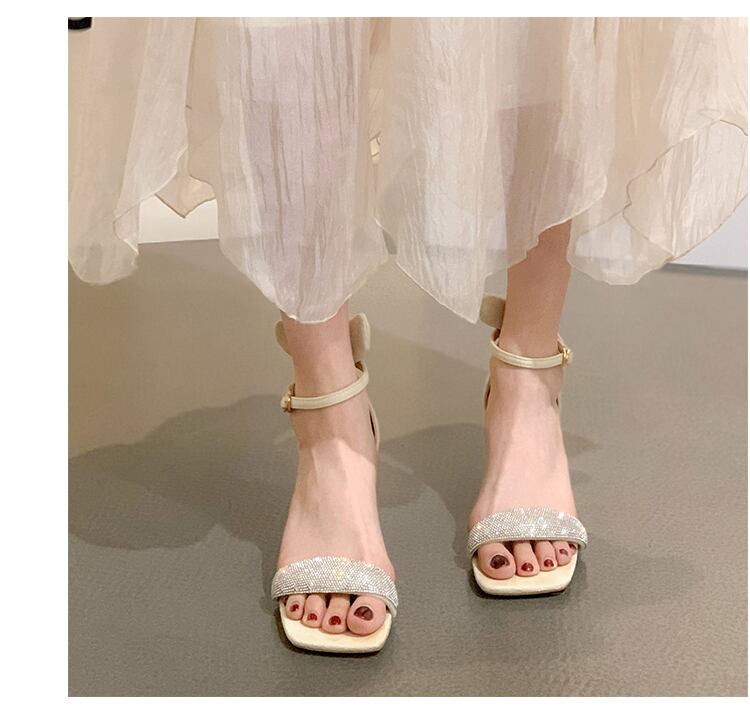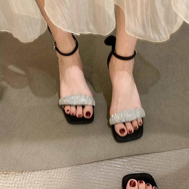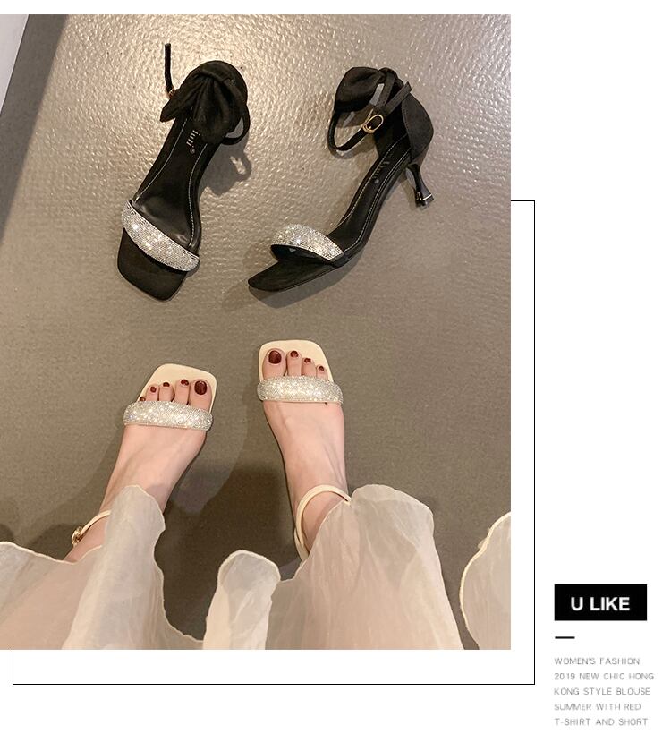フェアリースタイルのサンダル女性2022年夏の新しいネットレッドスーパースカート付きレトロラインストーンワンワードスティレットハイヒール 靴 シューズ サマー 夏物 jxjxf52913628503