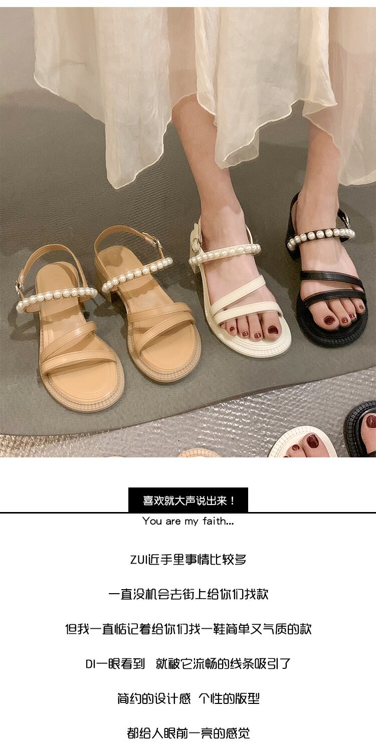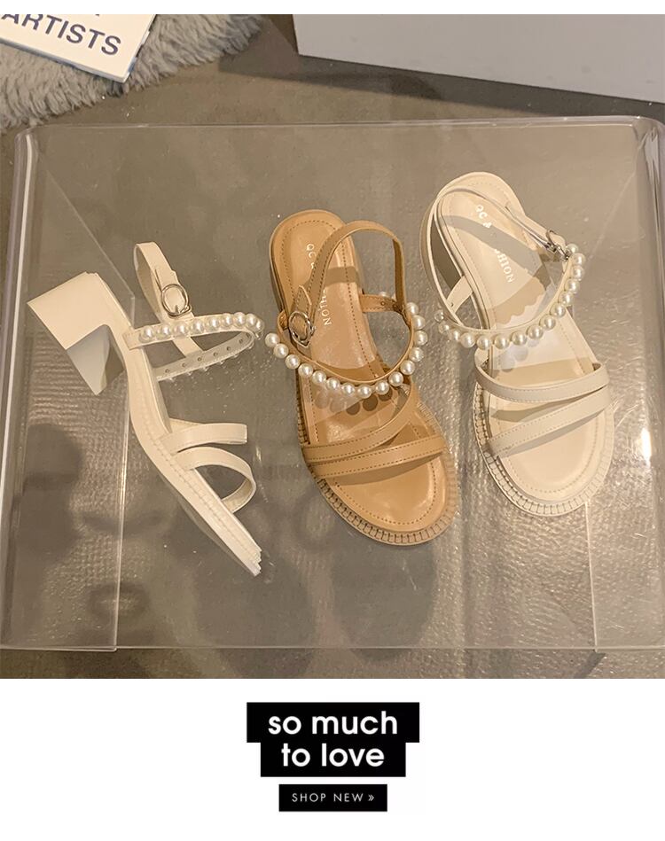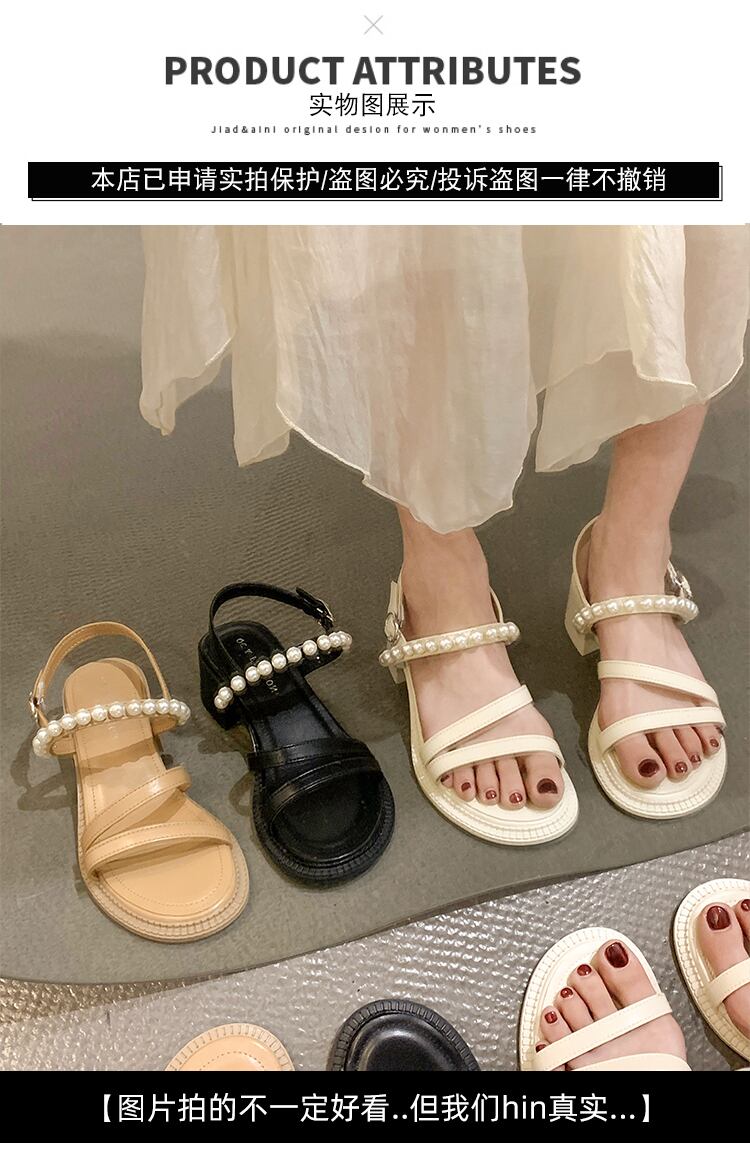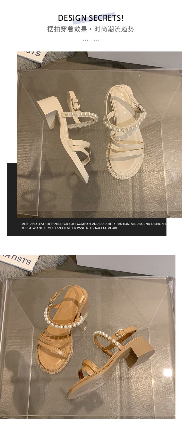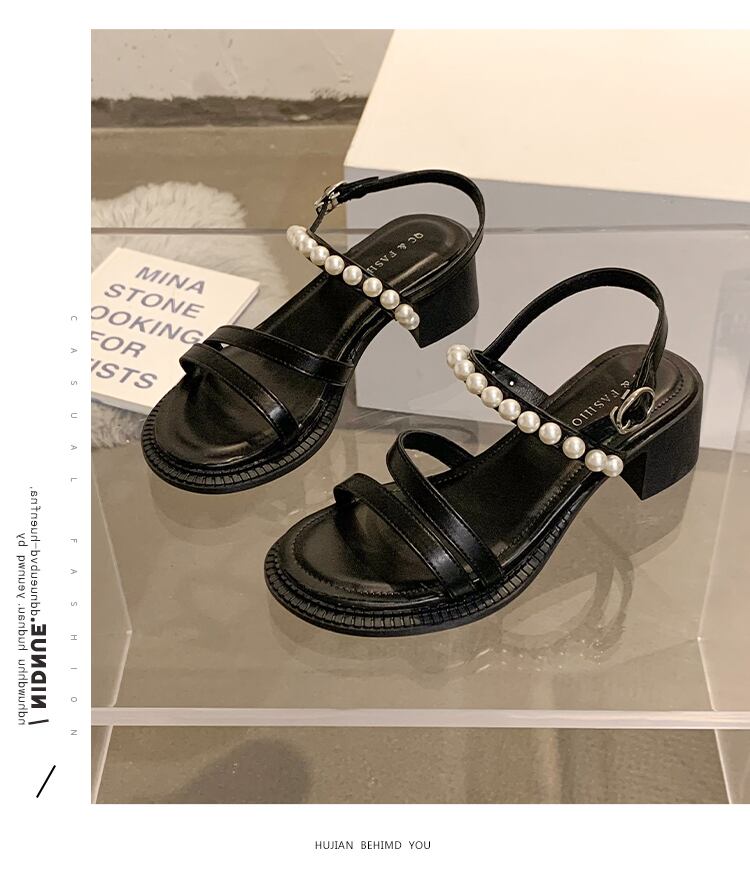 サンダルレディース2022年夏の新作ファッションオールマッチ優しいレトロパールバックル厚手のヒール滑り止めハイヒール潮 靴 シューズ サマー 夏物 真珠 jxjxf88531715320