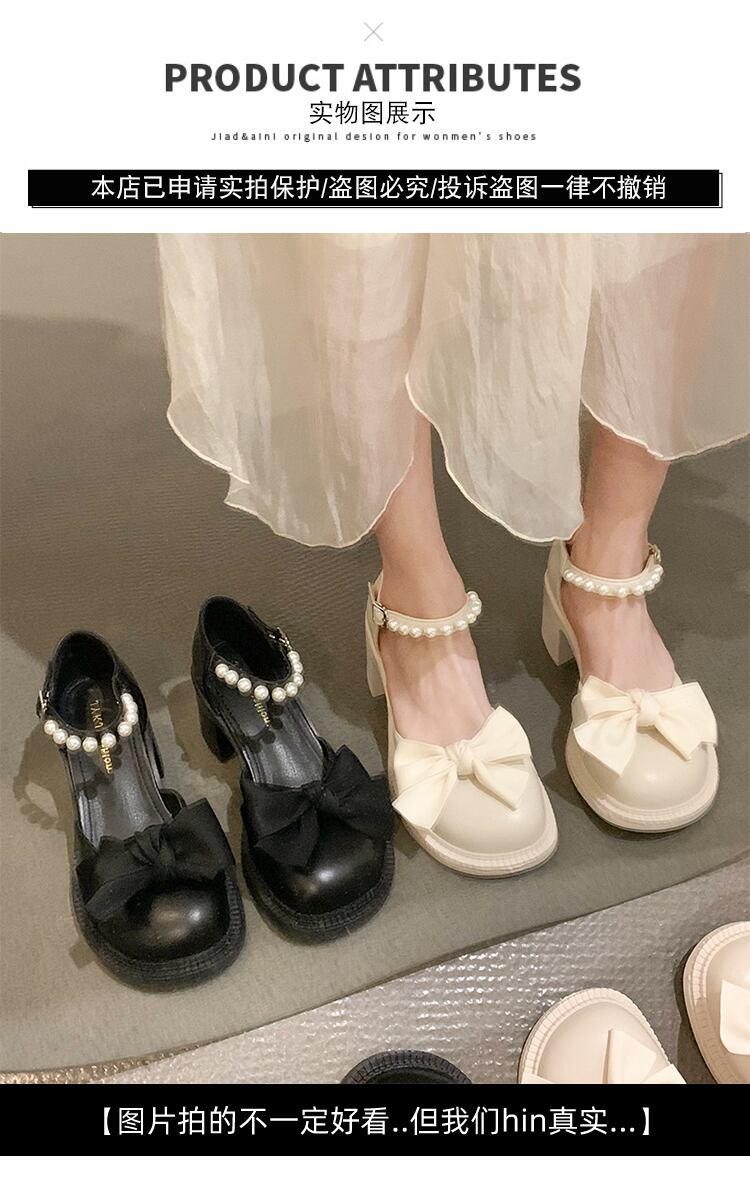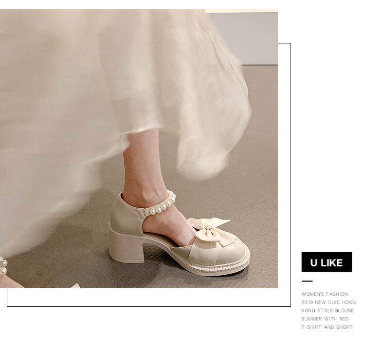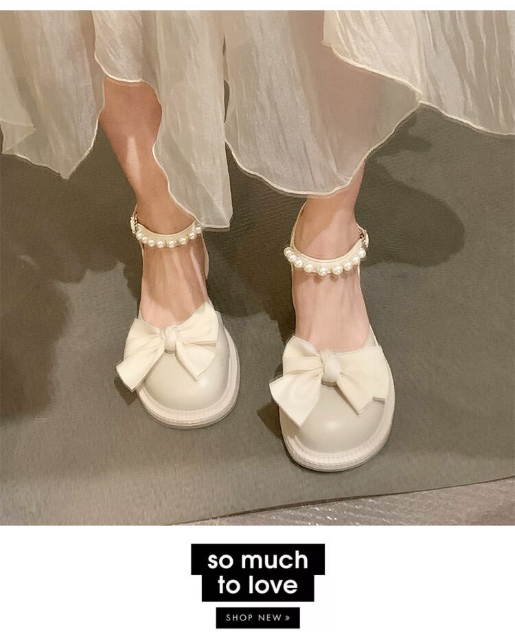 メリージェーンシューズレディース2022年春ニューボウパールシックヒールノンスリップスーパーファッションオールマッチスモールレザーシューズ 靴 リボン スプリング 春物 真珠 jxjxf8293693794