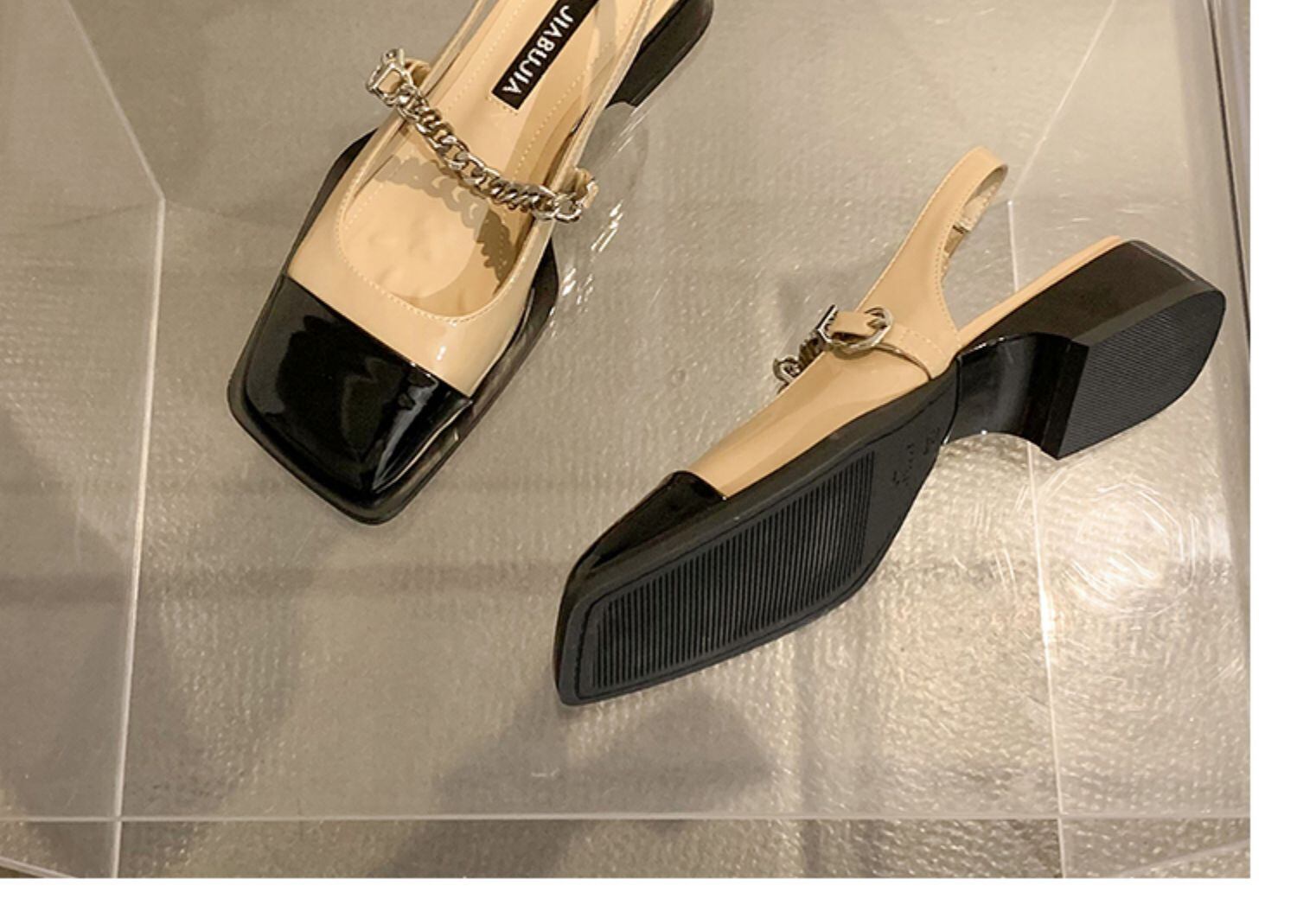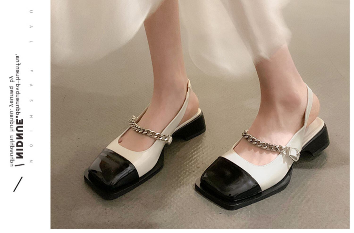 包頭サンダルレディース2022年夏の新作ファッションオールマッチフレンチレトロチェーンローヒール滑り止めスモールレザーシューズタイド 靴 サマー 夏物 jxjxf64122866439