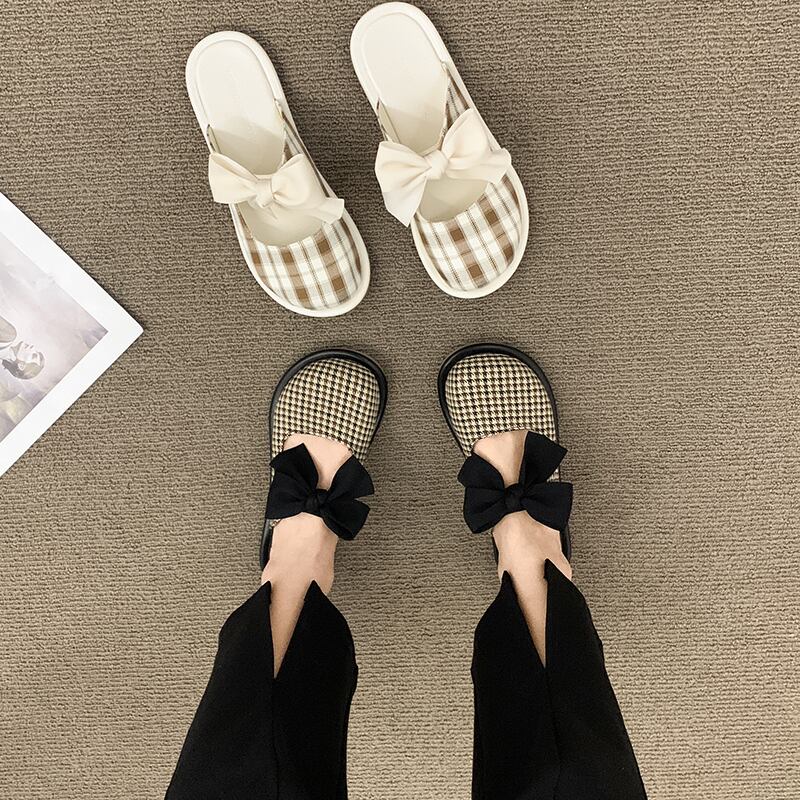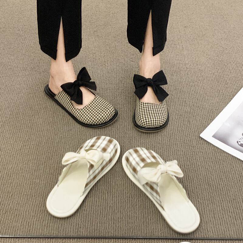 スリッパ2022夏の新しいファッションオールマッチレトロボウフラットボトム滑り止め包頭サンダルとスリッパ潮 リボン ミュール 靴 シューズ サマー 夏物 jxjxf61010403077