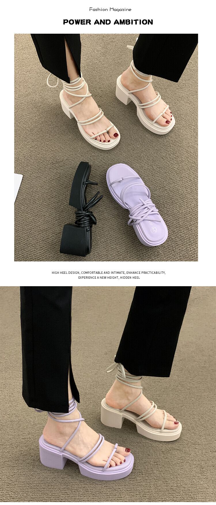 レースアップサンダルレディース2022夏の新しい厚いヒール滑り止めファッションオールマッチ小さな妖精スタイルのローマのハイヒール 靴 シューズ サマー 夏物 jxjxf43162633661
