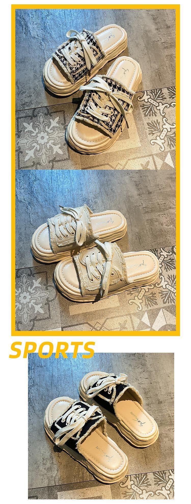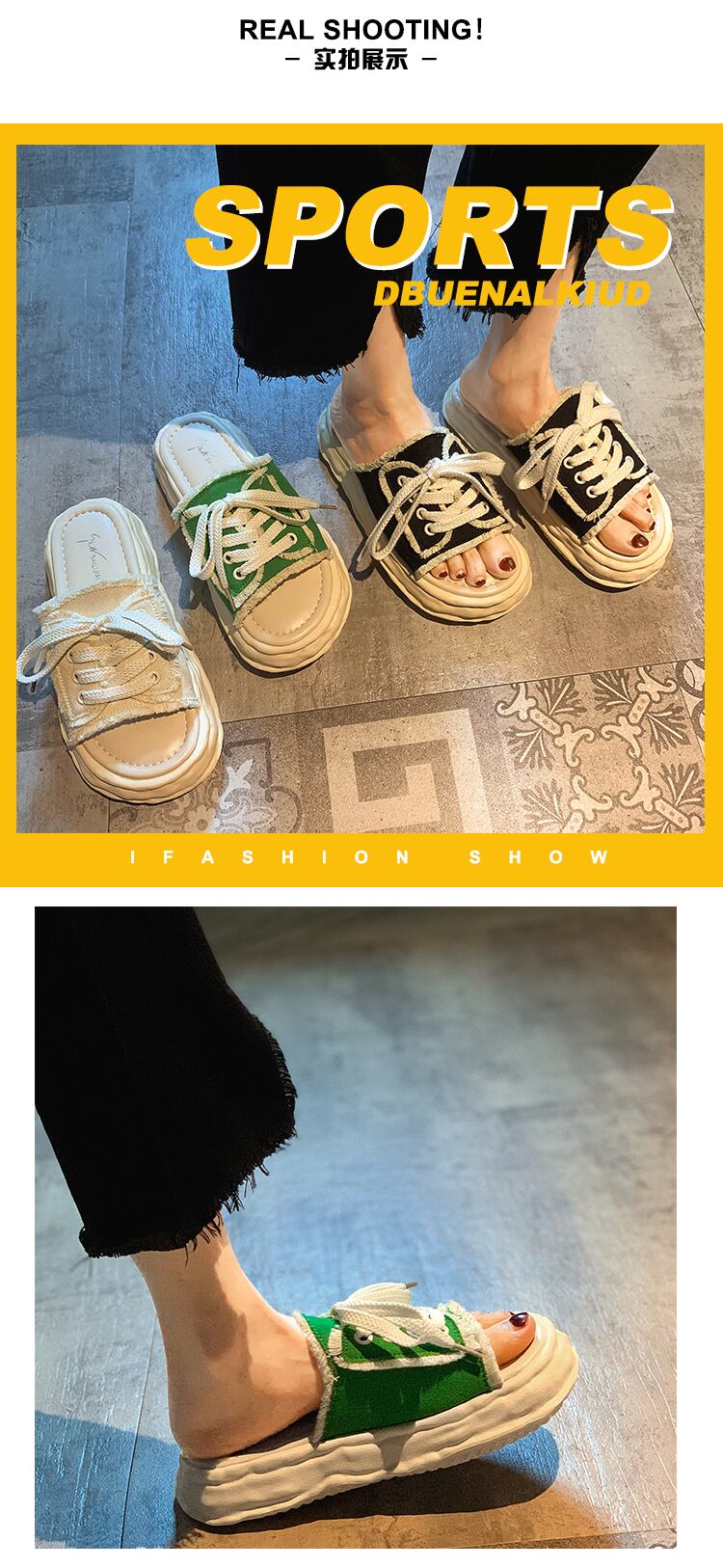 2022年夏に外でスリッパを履いた女性新しいインスーパーオールマッチレースアップ厚底滑り止めサンダルとスリッパの潮を溶かす ミュール 靴 シューズ サマー 夏物 jxjxf12451233803