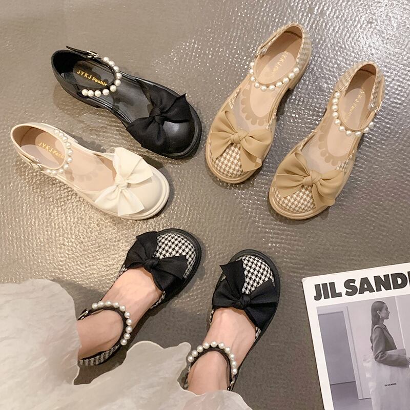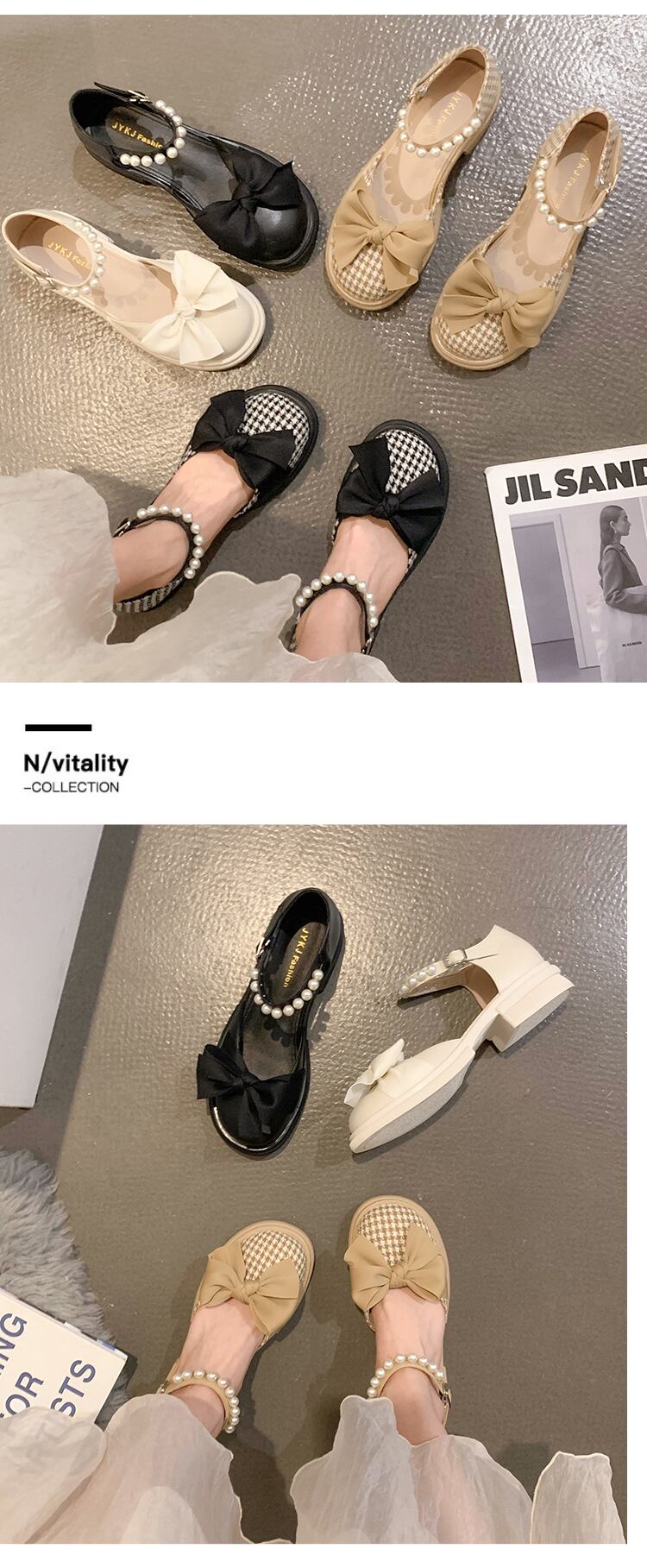 フェアリースタイルメアリージェーンシューズレディース2022夏ニューボウパールシックヒールノンスリップファッションオールマッチシングルシューズ 靴 リボン サマー 夏物 真珠 jxjxf39158011258
