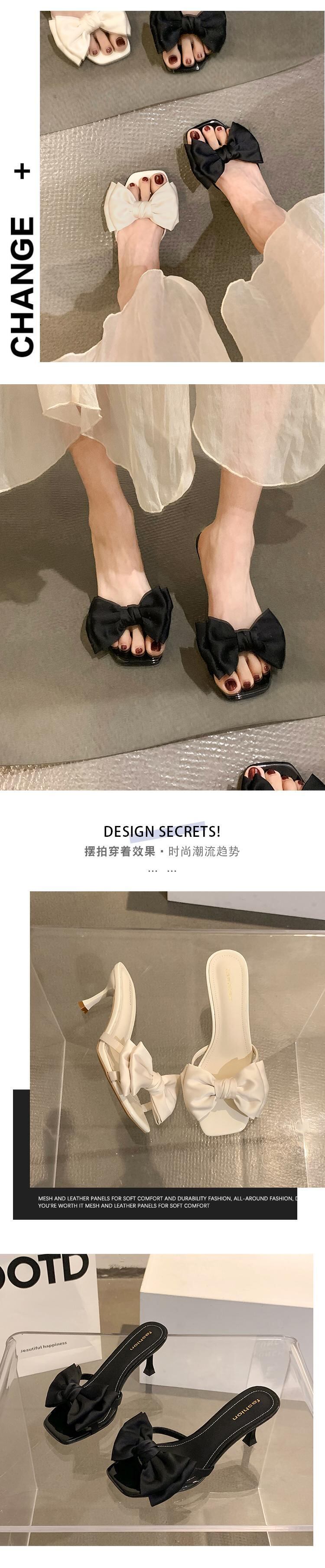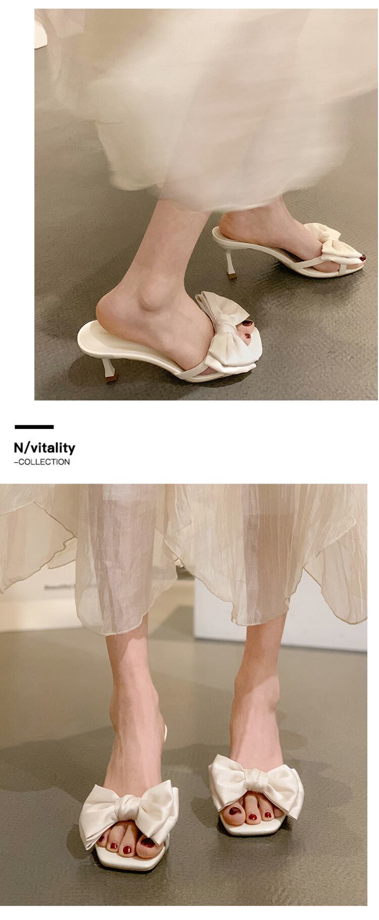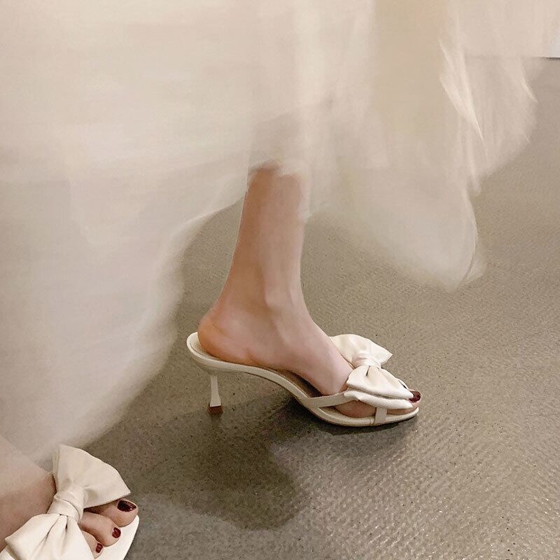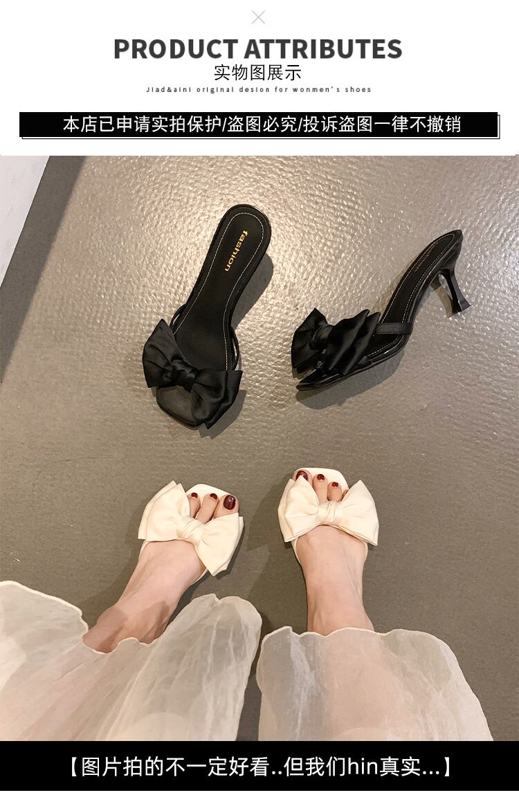 一言フリップフロップ女性の2022年夏の新しいスタイルの弓のスティレットヒールネット赤いファッションオールマッチの妖精スタイルのレトロなスリッパ レッド リボン ミュール 靴 シューズ サマー 夏物 jxjxf21997113503