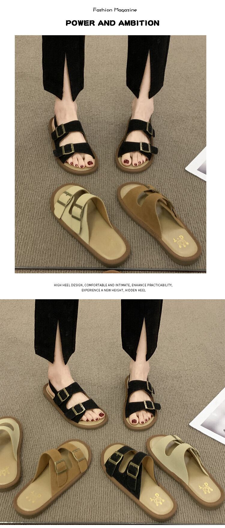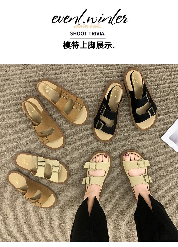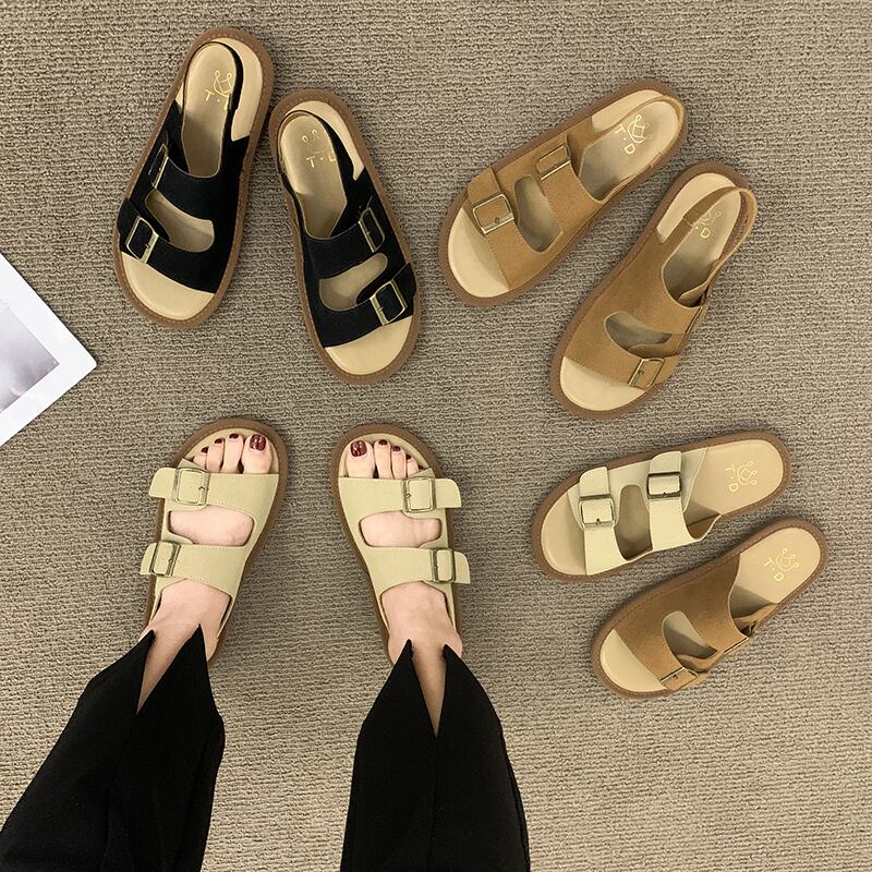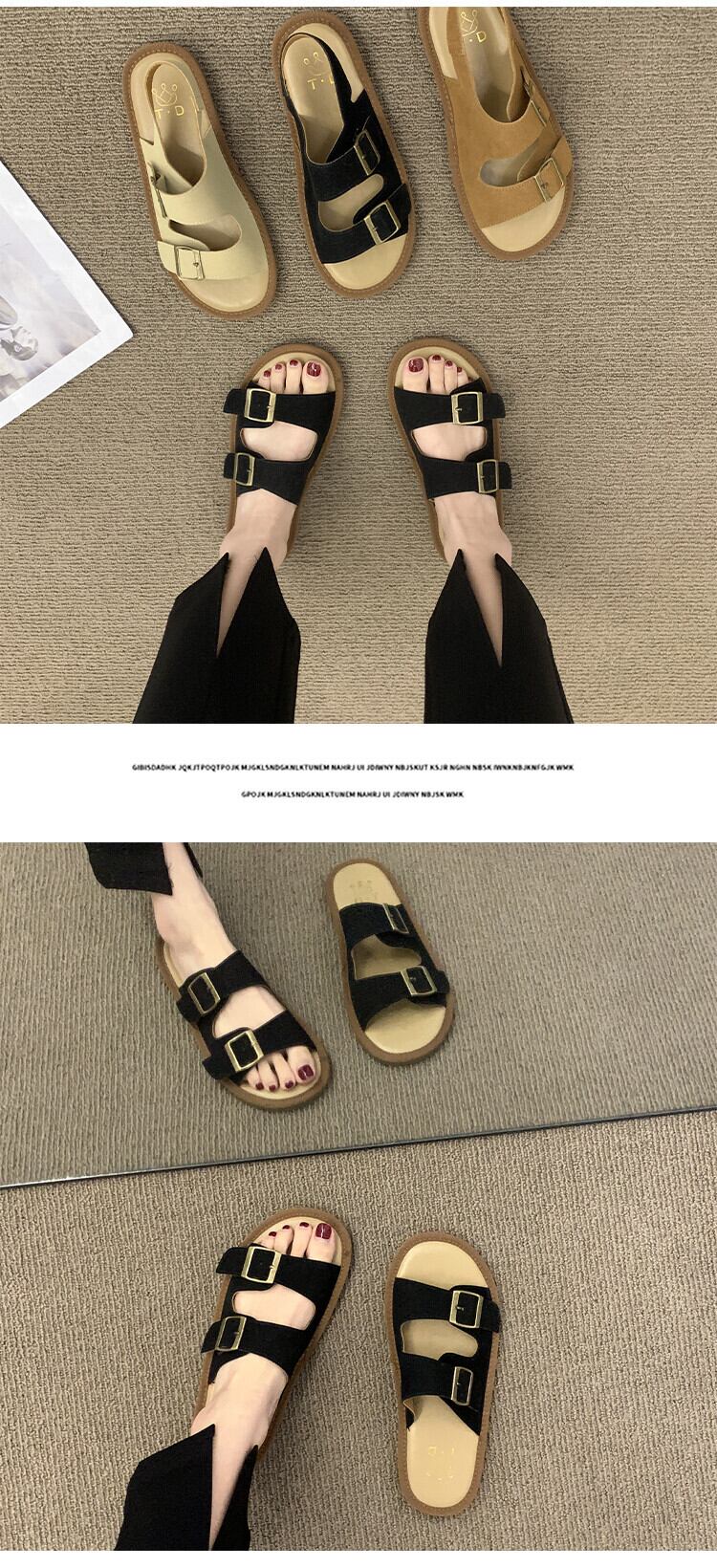 アウターウェアスリッパレディース2022夏新しいスーパーオールマッチレトロベルトバックルフラットボトム滑り止め一言サンダルとスリッパ ミュール 靴 シューズ サマー 夏物 ハーネス スリッポン jxjxf56739257696