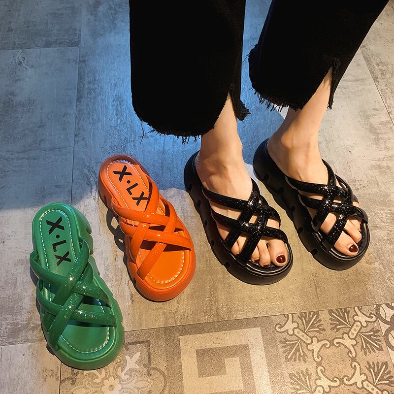 一言フリップフロップ女性の2022年夏の新しいクロス厚い底滑り止めネットレッドファッションオールマッチレトロサンダル 靴 シューズ サマー 夏物 jxjxf41399183741