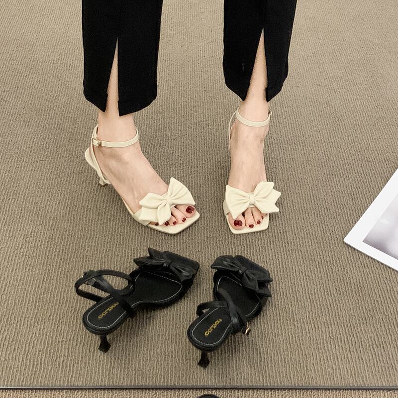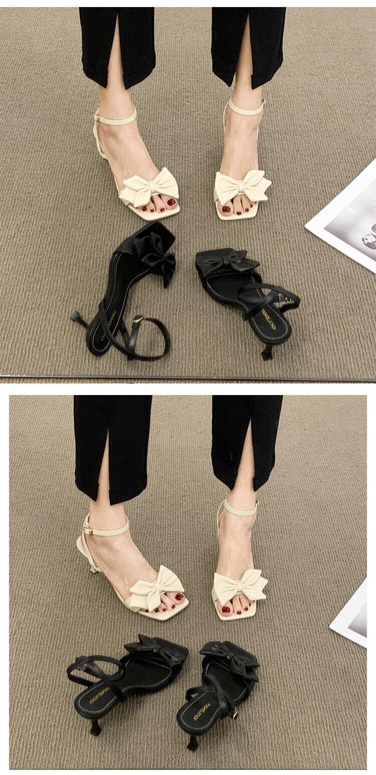フランスのサンダルレディース2022年夏の新しい弓のスティレットファッションオールマッチの妖精スタイルのレトロなローマのハイヒール リボン 靴 シューズ サマー 夏物 jxjxf45576544178