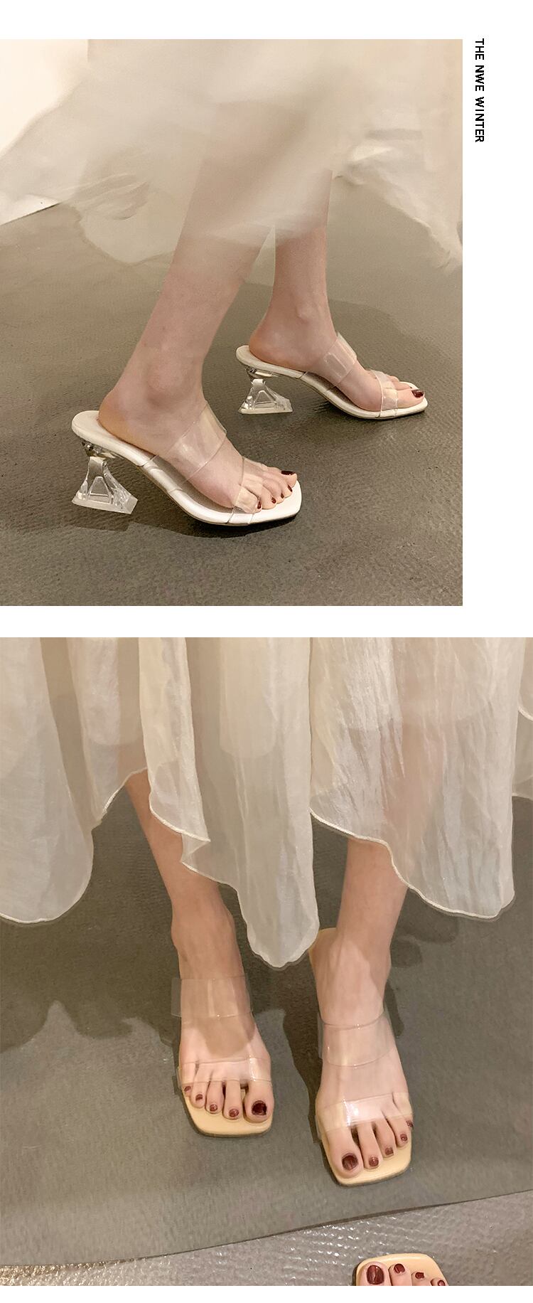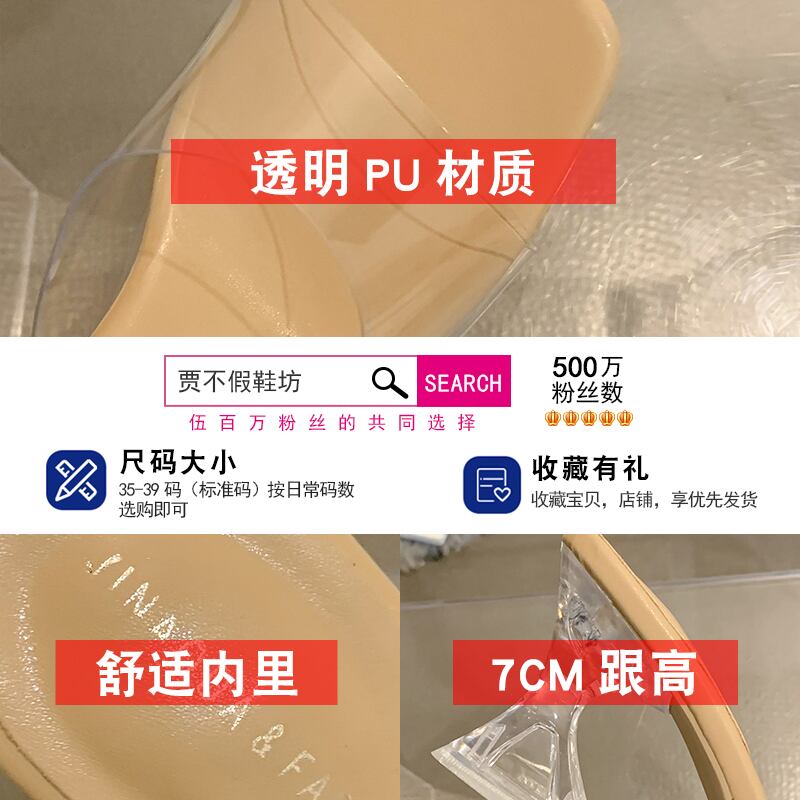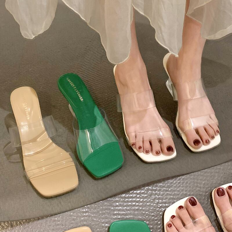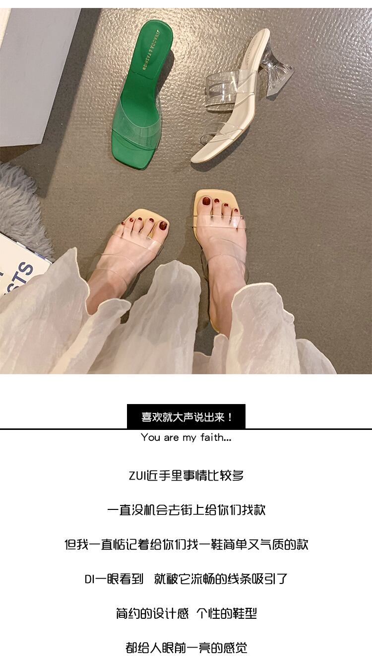 スリッパを履いている女性2022年夏新しいネットレッドスーパーオールマッチクリスタルシックヒール滑り止め透明ワンワードサンダルとスリッパ ミュール 靴 シューズ サマー 夏物 jxjxf97455060753